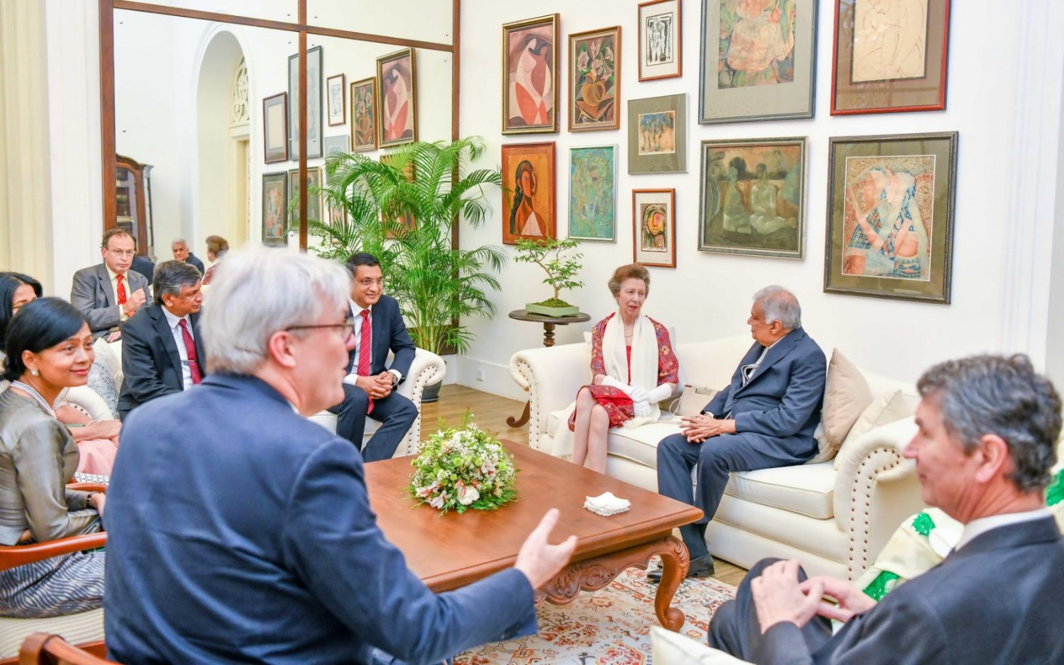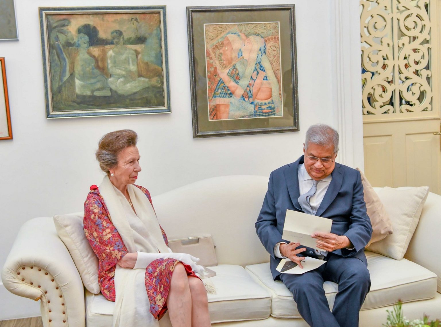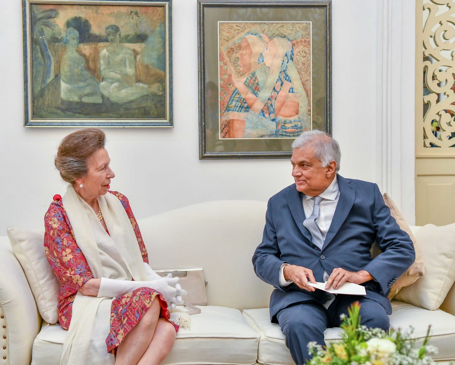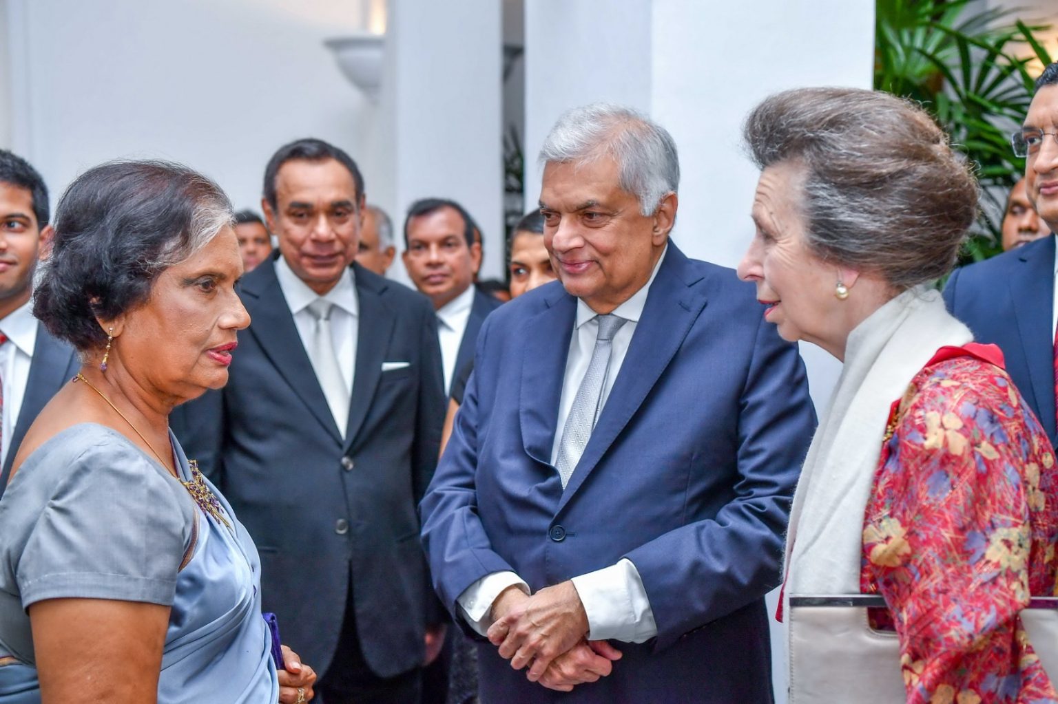 அதனையடுத்து இளவரசி ஆன் உள்ளிட்ட தூதுக்குழுவினர் ஜனாதிபதி ரணில் விக்ரமசிங்க மற்றும் பேராசிரியர் மைத்திரி விக்ரமசிங்கவுடன் சிநேகபூர்வமாக கலந்துரையாடினர்.