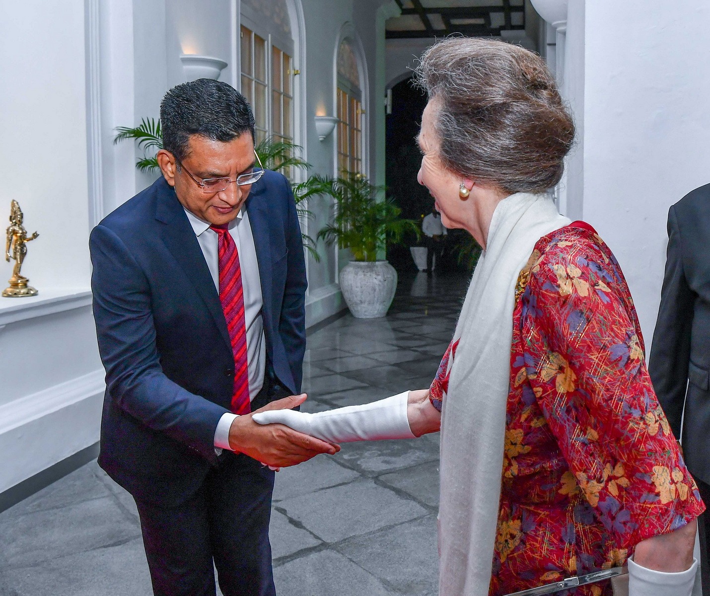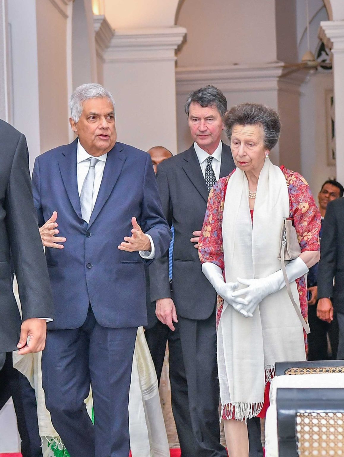 கொழும்பு கோட்டை ஜனாதிபதி மாளிகைக்கு வருகை தந்த இளவரசி ஆன் உள்ளிட்ட பிரித்தானிய தூதுக்குழுவுக்கு வெளிநாட்டு அலுவல்கள் அமைச்சர் ஜனாதிபதி சட்டத்தரணி அலி சப்ரியினால் வரவேற்பளிக்கப்பட்டது.