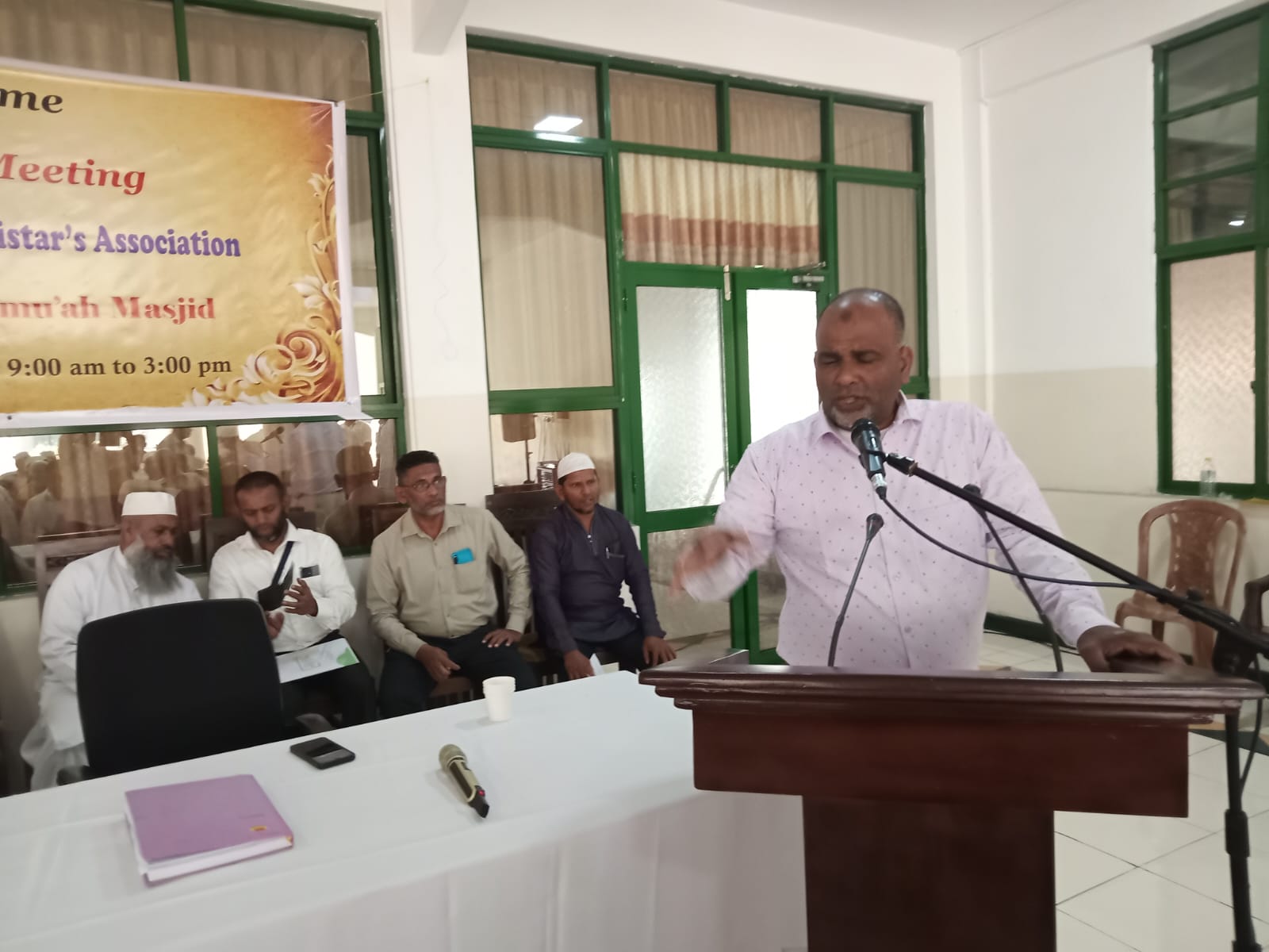 அகில இலங்கை முஸ்லிம் விவாகப் பதிவாளர் சங்கத்தின் பொதுக் கூட்டமானது சங்கத்தின் உப தலைவர் மௌலவி பஸ்லுர் ரஹ்மான் அவர்களின் வழிகாட்டலுடன் தலைவர் எம். ஜே. எம். சுஹைல் அவர்களின் தலைமையில் இடம்பெற்றது.