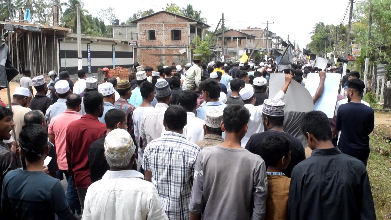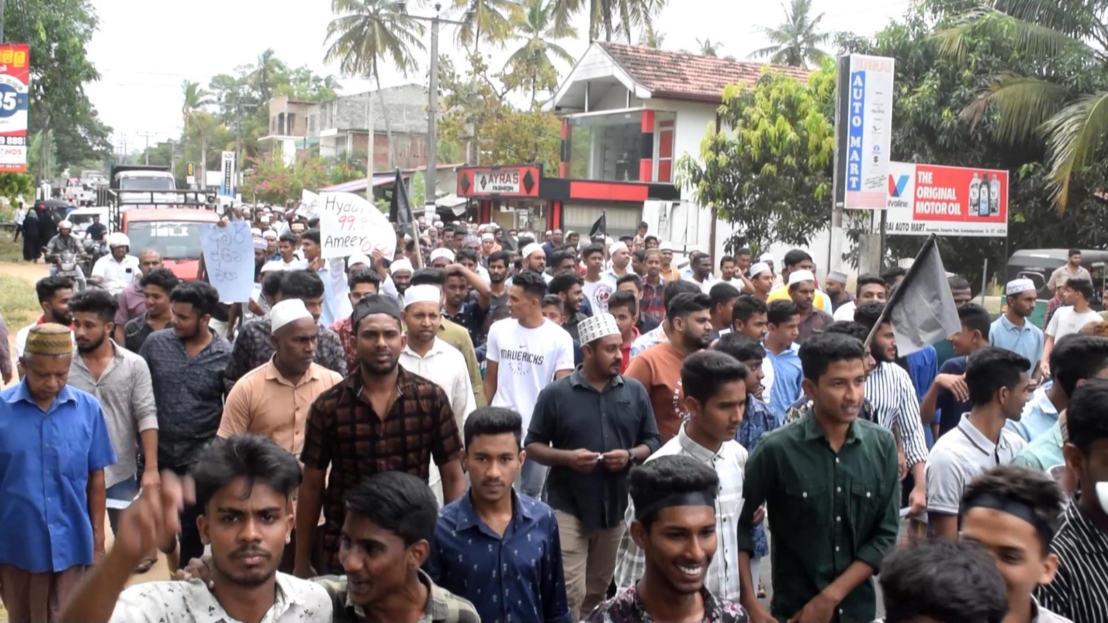 ஆர்ப்பாட்டப் பேரணி ஜும்ஆப் பள்ளிவாசலில் ஆரம்பமாகி பிரதான வீதியில் சுமார் ஒரு கிலோ மீட்டர் அளவில் அமைந்துள்ள குருவிக்கொடுவ சந்தி வரையிலும் சென்று மீளவும் பாடசாலை முன்னால் திரும்பி வந்து எதிர்ப்பு ஆர்ப்பாட்டக் காரார்கள் தங்களுடைய கோரிக்கைகளை முன் வைத்தனர்.