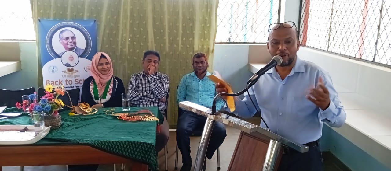 அடுத்ததாக சட்டத்தரணி மரியம் மன்சூர் நளிமுடீன் உரையாற்றிய போது, தனது தாயாரினது தகப்பனாரின் பெயரைத்தாங்கிய இப் பாடசாலைக்கும் மாணவச் செல்வங்களுக்கும் உதவி செய்யக்கிடைத்ததையிட்டு அகமகிழ்வதாகக் கூறினார். அத்தோடு, தனது தந்தை போன்ற கறைபடியாத கரங்களினால் மாணவர்களுக்கு கற்றல் உபகரணங்களை இனிதே உவந்தளித்தார்.
