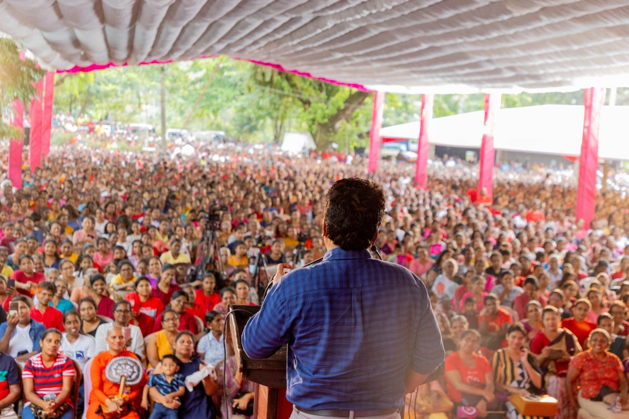 அவர்கள் எமக்கு எதிராக ஒன்றுசேர்வார்கள். அவர்களின் பணத்தைப் பிரயோகித்து, தொலைக்காட்சிகளில், செய்தித்தாள்களில் விளப்பரங்களைப் போட்டு நான் கூறியவகையிலான பிரச்சாரத் திட்டமொன்று தயாரிக்கப்பட்டுள்ளது. அதைப்போலவே பல்வேறு பாணியிலான குறைகூறல்கள் எழுகின்றன. அத்தகைய அவதூறுகளுக்கு பதிலளித்திட நாங்கள் நேரத்தை செலவிடப்போவதில்லை. குறைகூறல்கள், சேறுபூசுதல்கள் மூலமாக தேசிய மக்கள் சக்தி்யை பலவீனப்படுத்த நிலவிய காலம் கடந்துவிட்டது. எமக்கு எதிராக அனைத்துமே திட்டமிடப்பட்டுள்ளன. எனினும் தோல்விகண்டுள்ளன. நாங்கள் அதிகாரத்தைப் பெற்றுக்கொள்வதற்கான எமது பயணத்தை தொடர்வோம். அதன் பிரதானமான பங்குதான், எமது நாட்டின் பொருளாதாரத்தின் திரும்பற்புள்ளியான பெண்களின் விழித்தெழல். திசெம்பர் 30 ஆந் திகதி அதுவரை இலங்கை வரலாற்றில் பிரமாண்டமான பெண்கள் எழுச்சியை மாத்தறையில் வெளிக்காட்டினோம். அவர்கள் அதற்காகவே அதிகம் பதற்றமடைந்தார்கள். அவர்கள் நினைத்தார்கள் அரசியல் ஆண்களின் வேலையென்று. பெண்கள் முனைப்பான அரசியலில் பிரவேசிக்க மாட்டார்களென, அரசியல் தமது வகிபாகமென விளங்கிக்கொள்ள மாட்டார்களென அவர்கள் நினைத்தார்கள். பெண்கள் சதாகாலமும் ஆண்கள் தரப்பினரை அரசியலில் வைத்துவிட்டு பெண்கள் மௌனமாக இருந்தார்கள். எமது பெண்களை துன்பங்களுக்கு இலக்காக்கி, நிர்க்கதி நிலைக்கு உள்ளாக்கி, அந்த நிர்க்கதியில் இருந்து விடுபட எதையாவது கொடுத்து தமது பக்கத்திற்கு தி்ருப்பிக்கொள்ள முடியுமென நினைத்தார்கள்.