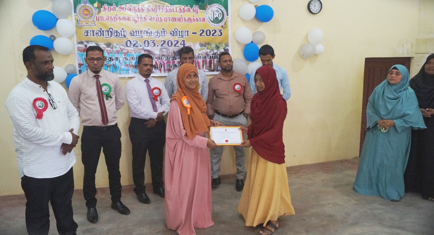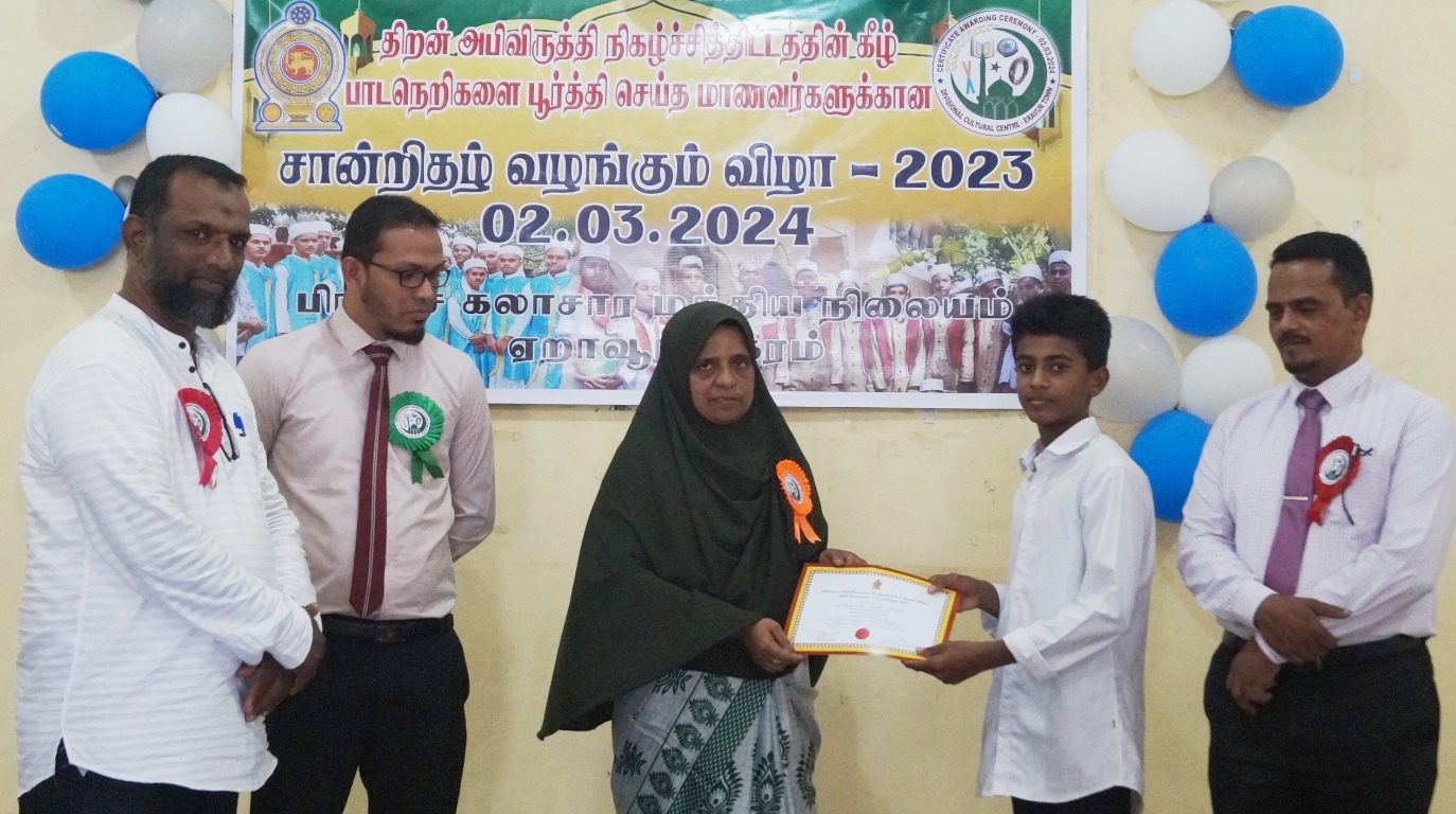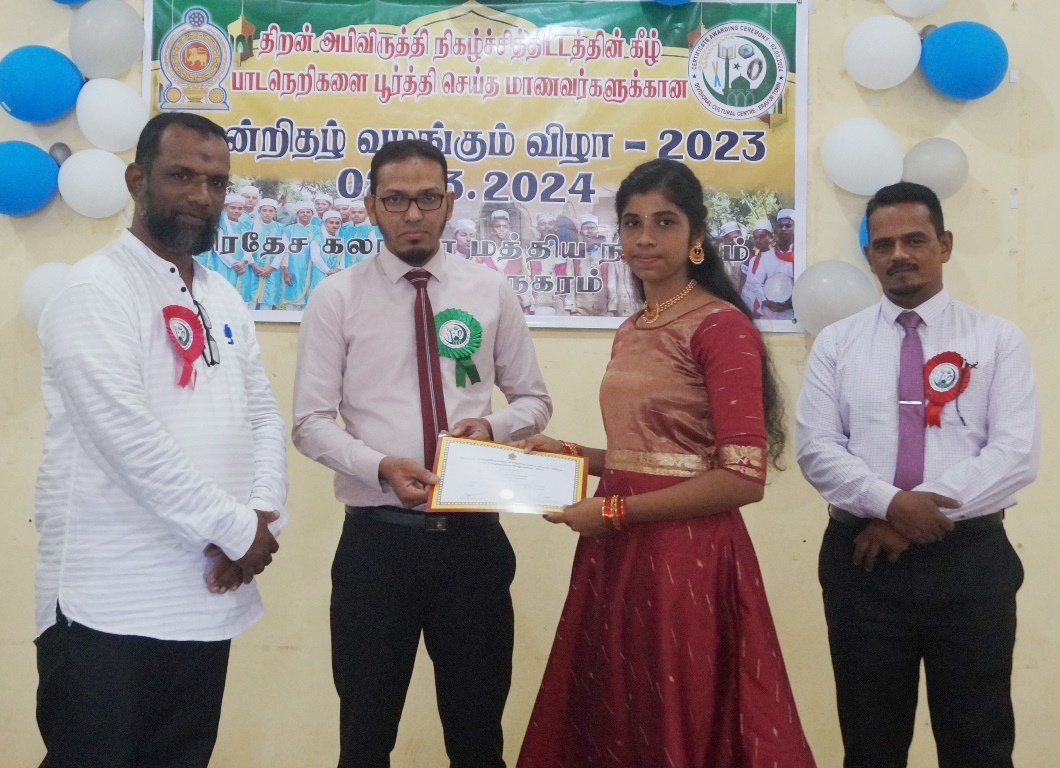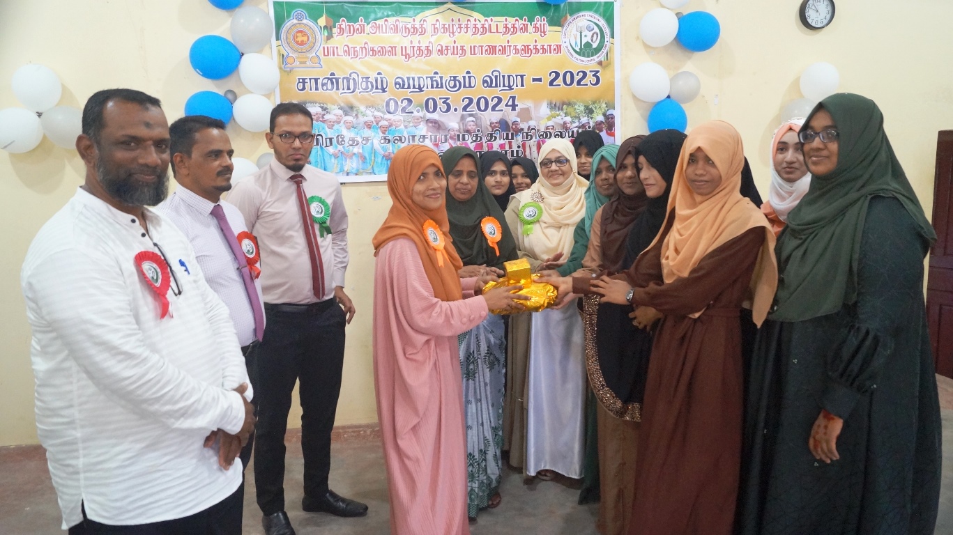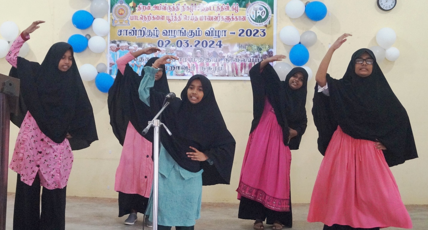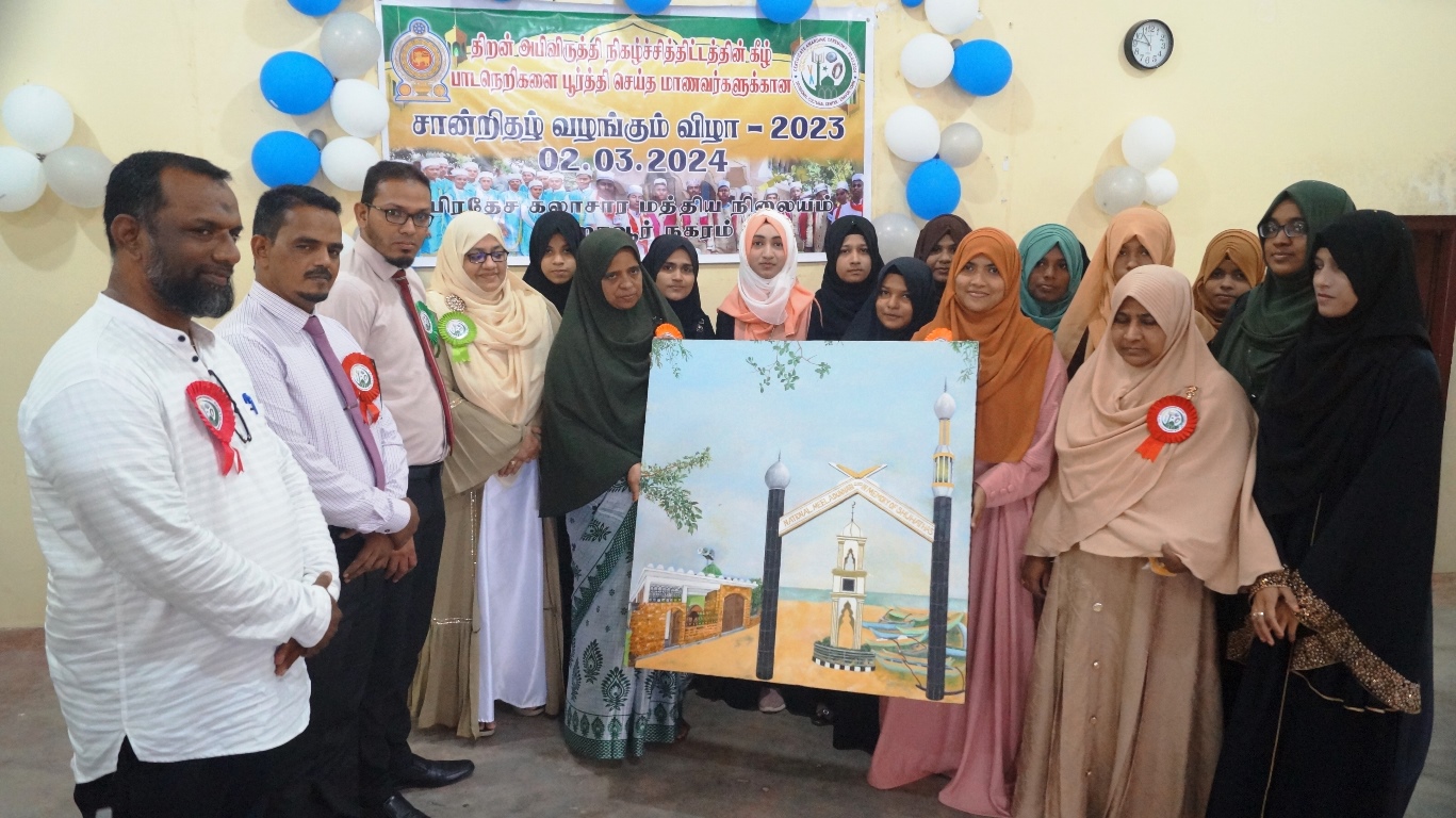 கலாச்சார நிலையப் பொறுப்பதிகாரி எம்.எம். மஹ்பூழ் தலைமையில் இடம்பெற்ற இந்நிகழ்வில் சான்றிதழ்கள் பரிசில்கள் ஆக்கங்கள் வழங்கல் உட்பட தமிழ் முஸ்லிம்களின் பாரம்பரிய கலை கலாச்சார அம்சங்களைப்  பிரதிபலிக்கும் கலை நிகழ்வுகளும் மாணவர்களால்  நிகழ்த்தப்பட்டன.