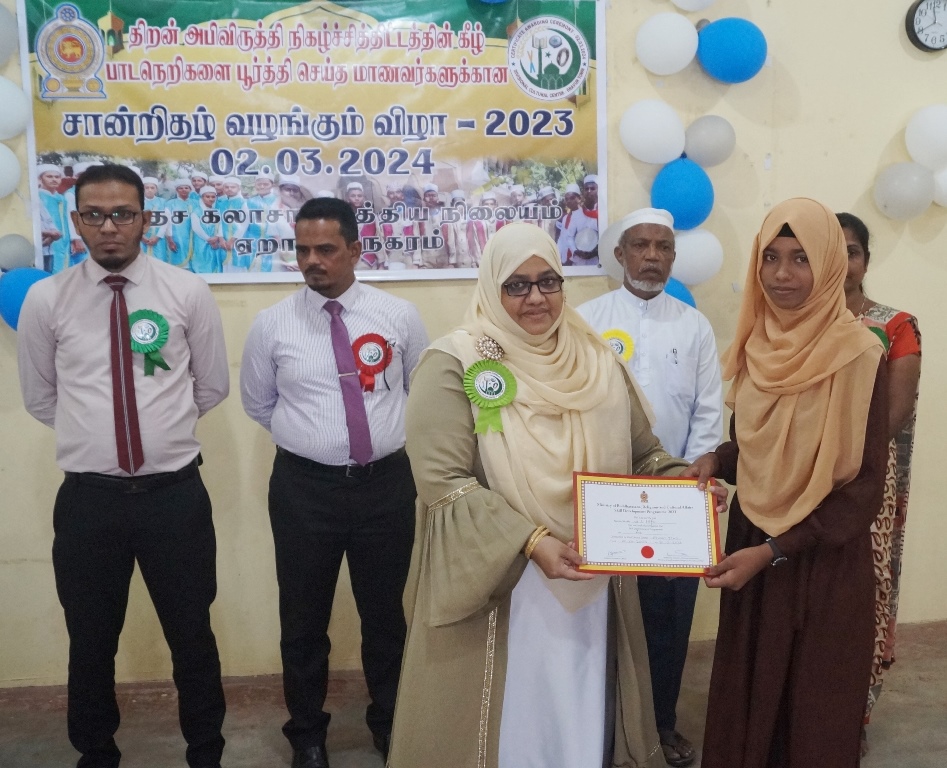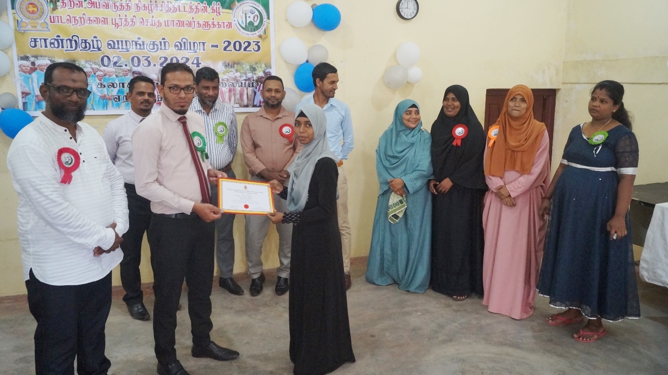 திறன் அபிவிருத்தி நிகழ்ச்சித் திட்ட பாடநெறிகளை பூர்த்தி செய்த பயிலுநர்களுக்கான சான்றிதழ்கள் வழங்கும் நிகழ்வு சனிக்கிழமை 02.03.2024 ஏறாவூர் பிரதேச வாவிக்கரை கலாச்சார மத்திய நிலையத்தில் இடம்பெற்றது.