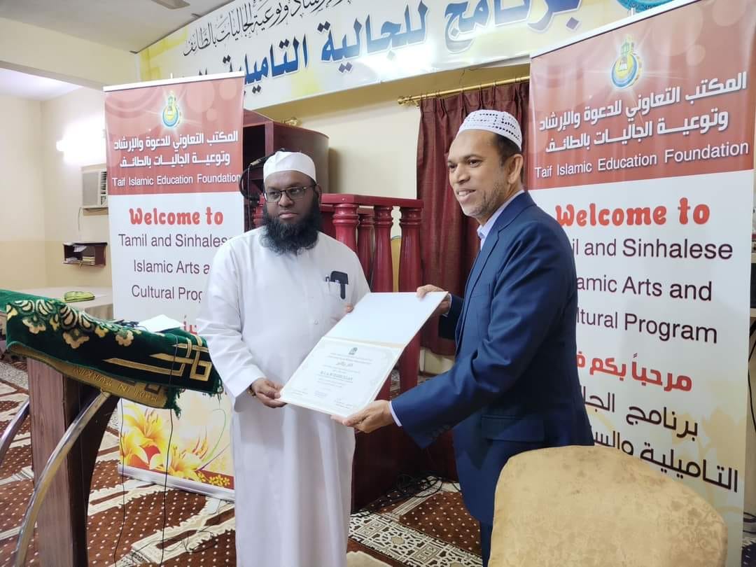 அத்தோடு சர்வதேச இஸ்லாமிய நிறுவனத்தின் தலைவர் அஷ்ஷெய்க் அஸ்மி அவர்கள் விஷேட நற்சான்றிதழ் வழங்கி முன்னாள் ஆளுநரை கௌரவித்தார்கள்.