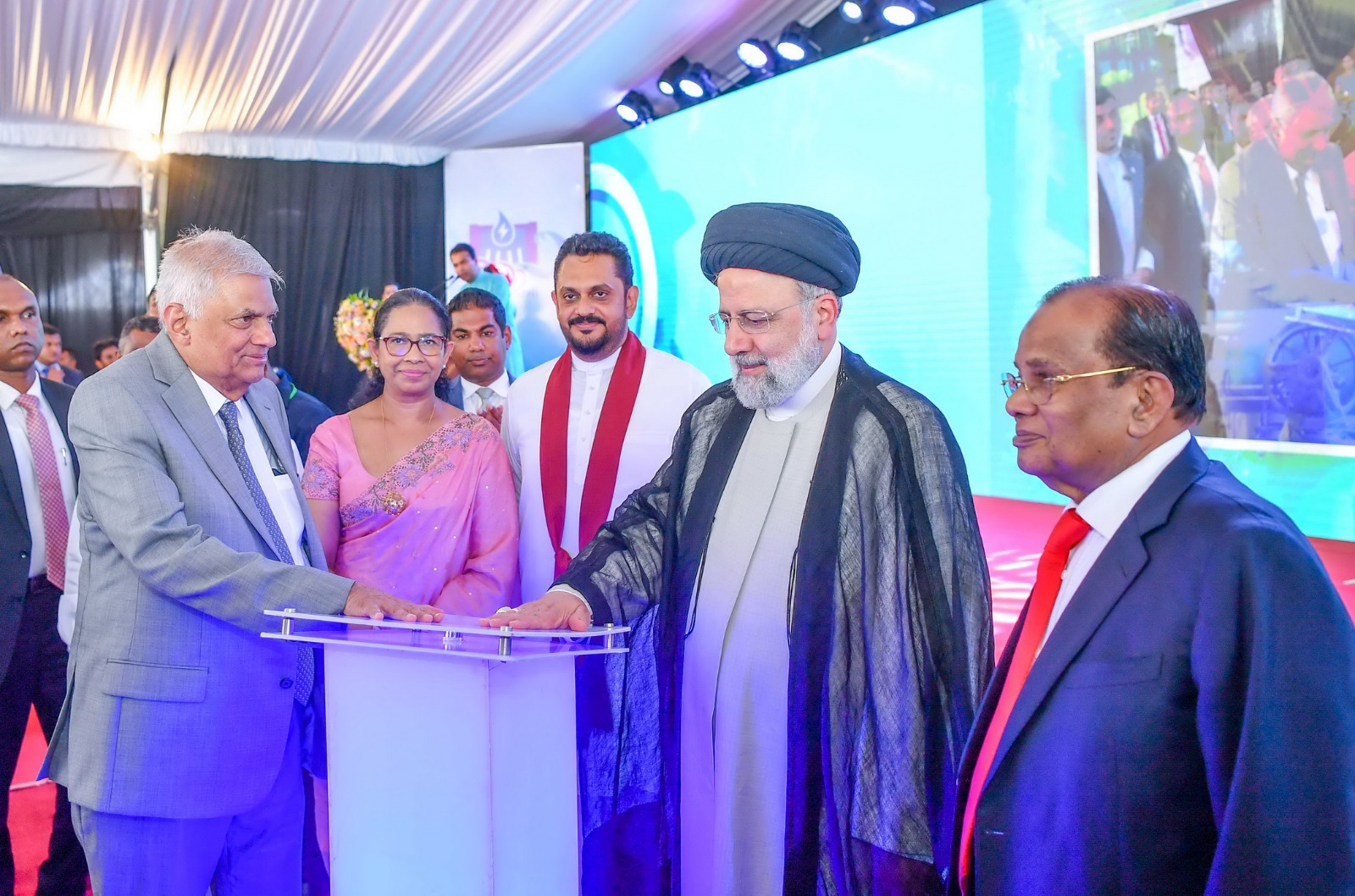 ஜனாதிபதி ரணில் விக்ரமசிங்கவின் அழைப்பின் பேரில் இந்த நிகழ்விற்கு வருகை தந்திருந்த ஈரான் ஜனாதிபதி இப்ராஹிம் ரைசிக்கு ஜனாதிபதி ரணில் விக்ரமசிங்கவினால் அமோக வரவேற்பளிக்கப்பட்டது.