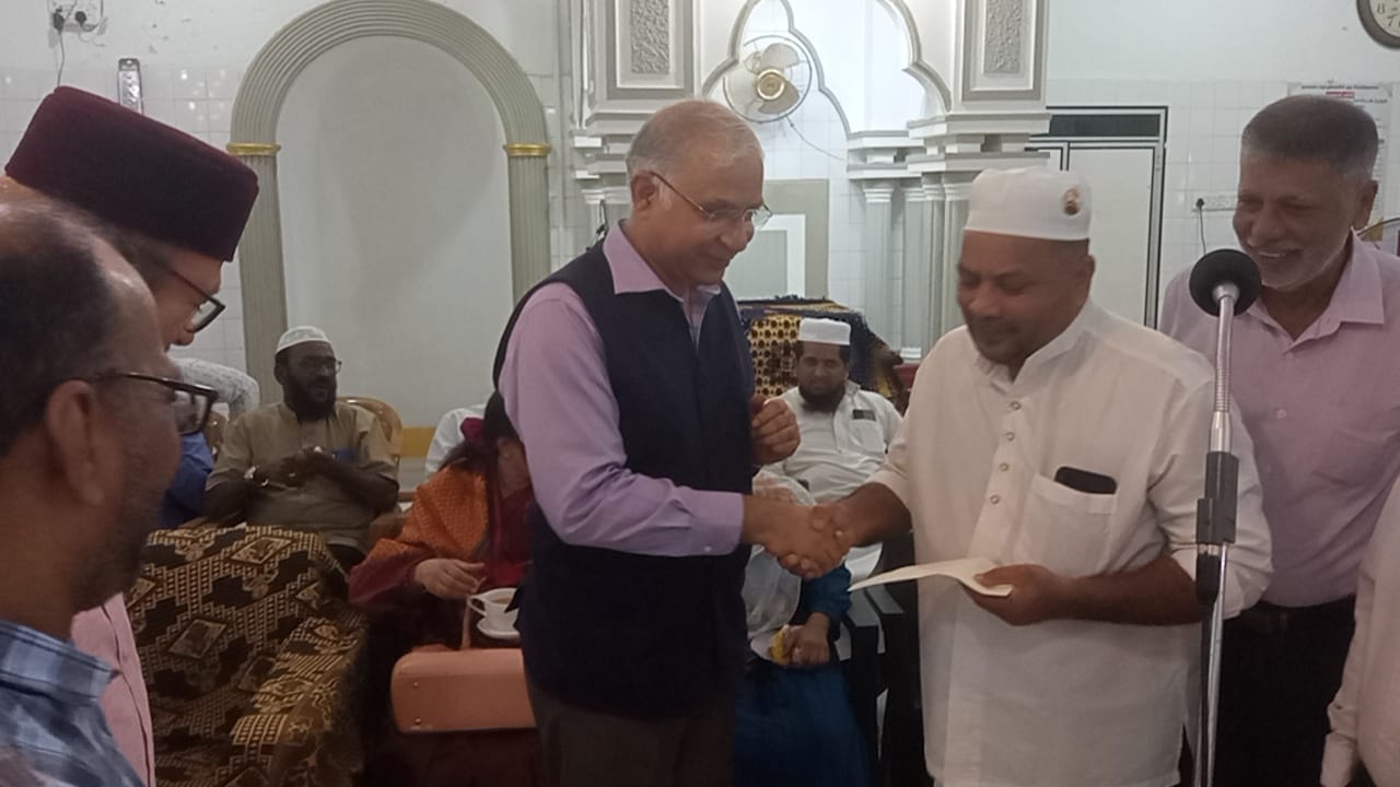 சிநேகபூர்வ விஜயத்தை மேற்கொண்ட இலங்கை நாட்டிற்கான இந்திய உயர் ஸ்தானிகருக்கு மெத்தைப் பெரிய ஜும் ஆ பள்ளிவாயல் மற்றும் சம்மேளனம் சார்பில் நினைவுச் சின்னம் வழங்கி கெளரவிக்கப்பட்டதுடன் சம்மேளனத்தின் செயலாளரினால் மஹஜர் ஒன்றும் கையளிப்பட்டமை குறிப்பிடத்தக்கது.