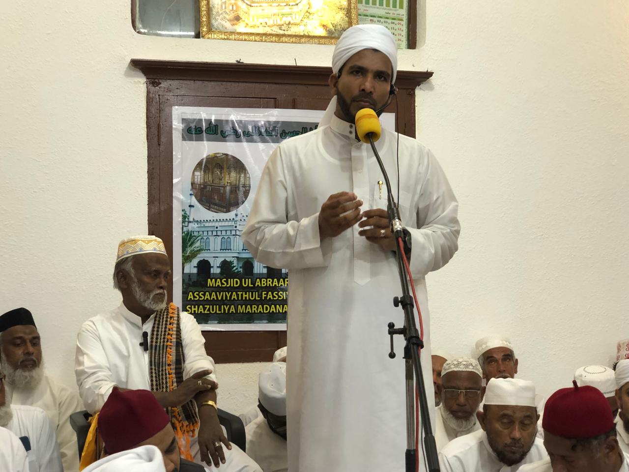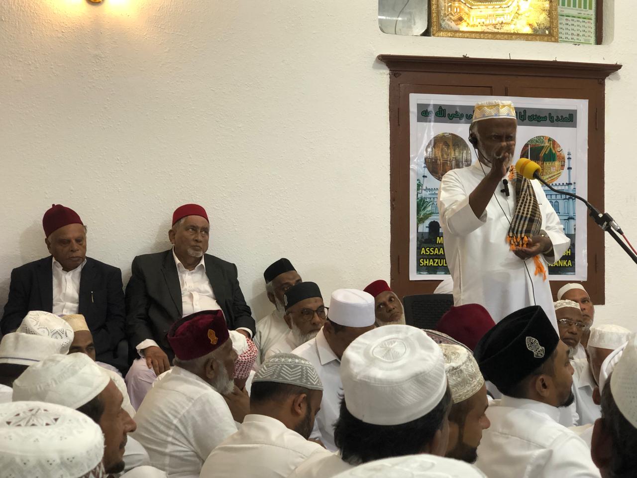 கலீபதுல் குலபா மௌலவி எம்.இஸட்.முஹம்மத்ஸுஹுர் (பாரி) இங்கு பேசும்போது ஆன்மீகத்திற்கும் கல்விக்கும் முக்கியத்துவம் வழங்கிய தரிக்கவாக எமது ஷாதுலிய்யா தரீக்கா திகழ்கிறது. தரீக்கா காட்டிய திக்ர்,ஸலவாத் உட்பட ஏனைய நல்ல அமல்களை கொண்டு ஸாவியாக்களை உயிரூட்டுவோம்.ஷாதுலிய்யா தரீக்கா இன்று முழு உலகிலும் பல கோடி மக்களால் பின்பற்றப்படுகிறது என்றார்.