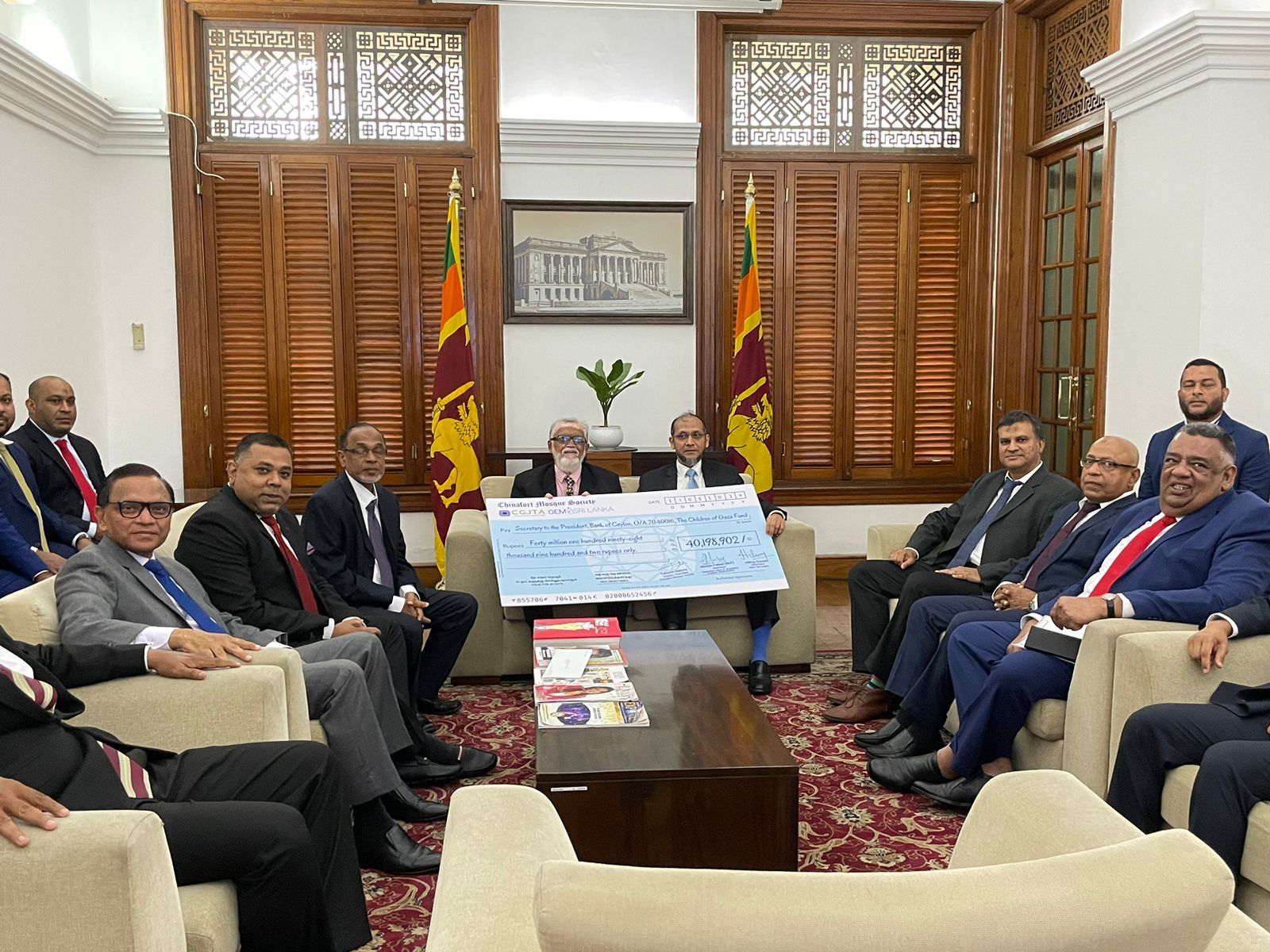 பேருவளை சீனன்கோட்டை பள்ளி சங்கம் சீனன்கோட்டை இரத்தினக் கல் மற்றும் ஆபரண வர்த்தகர் சங்கம் இணைந்து பலஸ்தீன் காஸா சிறுவர் நிதியத்திற்காக சேமிக்கப்பட்ட 40,198,902 ரூபா நிதியை ஜனாதிபதி ரணில் விக்ரமசிங்கவிடம் 21ம் திகதி கையளிக்கப்பட்டது.