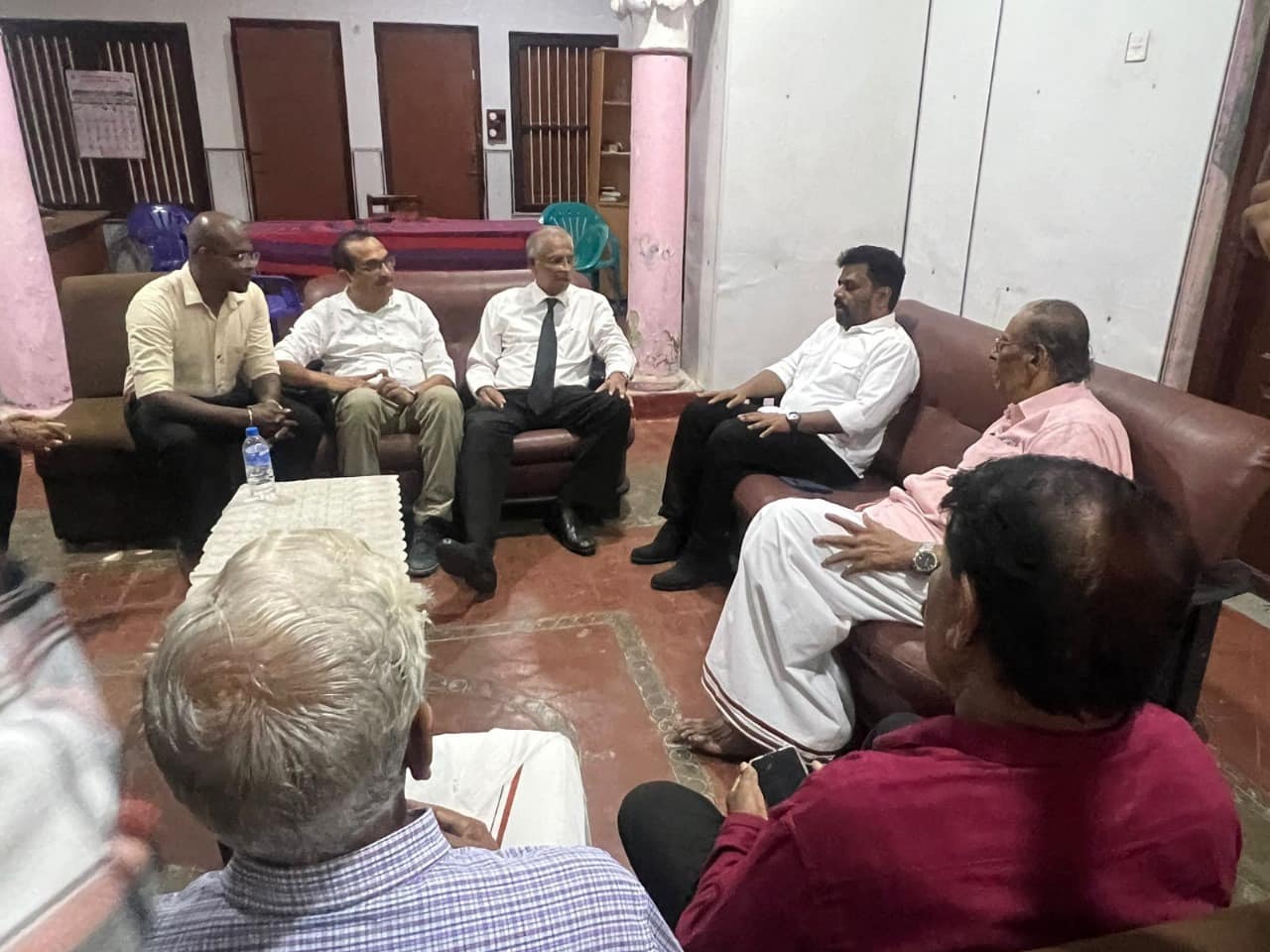 யாழ்ப்பாணத்திற்கு சுற்றுப்பயணத்தை மேற்கொண்டிருக்கும் தேசிய மக்கள் சக்தியின் தலைவர் தோழர் அநுர குமார திசாநாயக்க இன்று (11) முற்கபல் இலங்கை தமிழ் அரசு கட்சியின் அலுவலகத்தில் பாராளுமன்ற உறுப்பினர் எம்.ஏ. சுமந்திரன், முன்னாள் பாராளுமன்ற உறுப்பினர் மாவை சேனாதிராஜா உள்ளிட்ட கட்சியின் பிரதிநிதிகளை சந்தித்து கலந்துரையாடினார்.