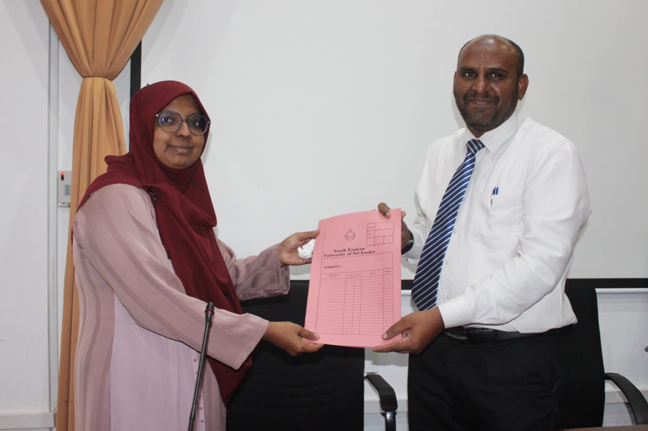 முகாமைத்துவ வர்த்தக பீடத்தின் பீடாதிபதியாக பேராசிரியர் கலாநிதி ஏ.எம்.எம். முஸ்தபா மற்றும் முகாமைத்துவ துறையின் துறைத்தலைவராக பேராசிரியர் கலாநிதி எம்.ஏ.சி. சல்பியா உம்மா, நிதி மற்றும் கணக்கியல் துறையின் துறைத்தலைவராக சிரேஷ்ட விரிவுரையாளர் எம்.ஏ.சி.என்.ஷபானா ஆகியோர் தங்கள் கடமைகளை உபவேந்தர் பேராசிரியர் கலாநிதி ரமீஸ் அபூபக்கர் முன்னிலையில் ஏற்றுக்கொள்ளும் நிகழ்வு 2024.07.01 ஆம் திகதி முகாமைத்துவ வர்த்தக பீடத்தில் இடம்பெற்றது.