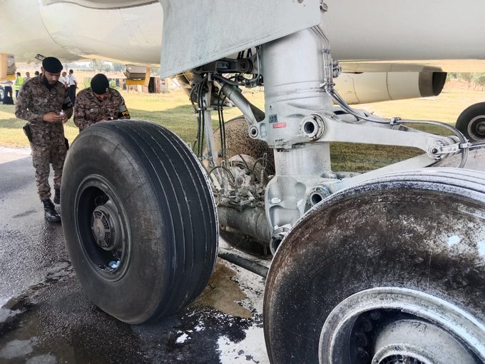 பாகிஸ்தான் பெஷாவர் விமான நிலையத்தில் சவுதி எயார்லைன்ஸ் விமானம் தரையிரங்கும் போது திடீரென தீப்பிடித்தால் பரபரப்பு ஏற்பட்டுள்ளது.