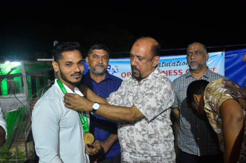 எம்.எல்.எம். சப்றாஸ் எமது மாவட்டத்திற்கும் எமது பிரதேசத்திற்கும் பெற்றுத்தந்த வெற்றிக்காக அவரையும் ஓரியன்ட் ஜிம் நிலைய நிருவாகத்தை பாராட்டும் வகையிலும்; அதன் வளர்ச்சிக்காகவும் அகில இலங்கை மக்கள் காங்கிரஸ் தேசிய தலைவர் றிசாட் பதியுதீன் பாராளுமன்ற பன்முகப்படுத்தப்பட்ட நிதியில் இருந்து இரண்டு லட்சம் ரூபா ஒதிக்கீடு செய்ய பரிந்துரைக்கப்பட்டுள்ளது என்றும் குறிப்பிட்டார்.