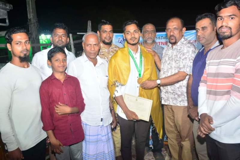 எம்.எல்.எம். சப்றாஸ் எமது மாவட்டத்திற்கும் எமது பிரதேசத்திற்கும் பெற்றுத்தந்த வெற்றிக்காக அவரையும் ஓரியன்ட் ஜிம் நிலைய நிருவாகத்தை பாராட்டும் வகையிலும்; அதன் வளர்ச்சிக்காகவும் அகில இலங்கை மக்கள் காங்கிரஸ் தேசிய தலைவர் றிசாட் பதியுதீன் பாராளுமன்ற பன்முகப்படுத்தப்பட்ட நிதியில் இருந்து இரண்டு லட்சம் ரூபா ஒதிக்கீடு செய்ய பரிந்துரைக்கப்பட்டுள்ளது என்றும் குறிப்பிட்டார்.