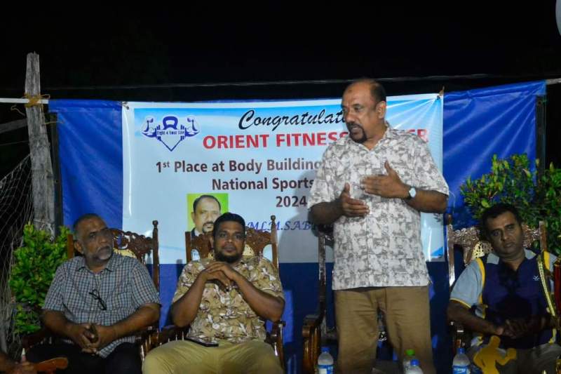 48 வது தேசிய விளையாட்டு விழாவில் (60 – 65) இடைப்ப்ரிவின் கீழ் பங்கு பற்றி முதலாம் இடத்தினை பெற்ற ஓரியன்ட் ஜிம் நிலைய பயிற்றுவிப்பாளர் எம்.எல்.எம்.சப்ராஸை கௌரவிக்கும் நிகழ்வு நிலைய வளாகத்தில் நேற்று இரவு இடம் பெற்ற போதே அவர் மேற் சொன்னவாறு தெரிவித்தார்.