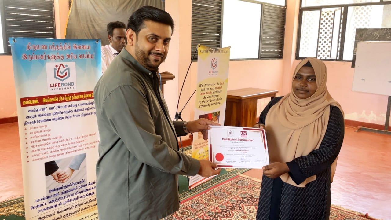 லைப் பொண்ட் சமூக சேவை அமைப்பினால் நடத்திய திருமண வாழ்வை எதிர் நோக்கி இருப்பவர்களுக்கான, இரண்டு மாத கால இலவசக் கற்கை நெறியை பூர்த்தி செய்த யுவதிகளுக்கான சான்றிதழ் வழங்கும் நிகழ்வு மாவனல்லை உயன்வத்தை மஸ்ஜிதுன் நூர் கேட்போர் கூடத்தில்,உயன்வத்தை யூ.வீ.மீடியா அங்கத்தவர்களின் ஒத்துழைப்போடு நடைபெற்றது.