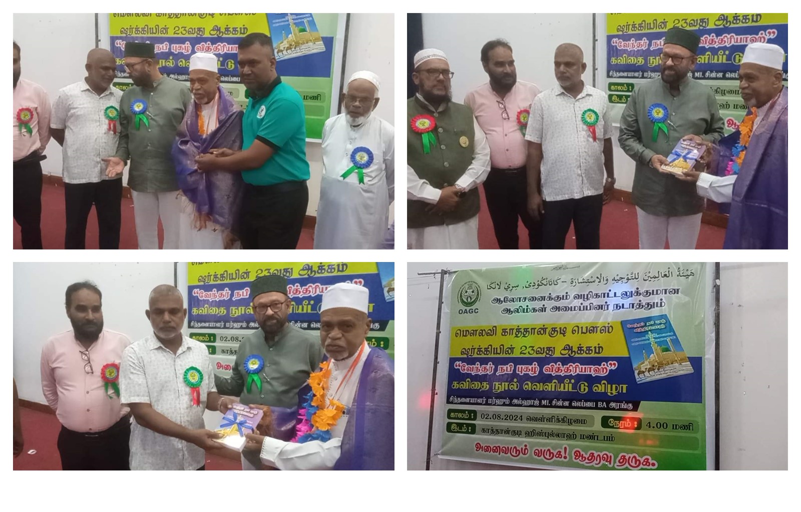 மெளலவி காத்தான்குடி பெளஸ் ஷர்க்கி எழுதிய 23 வது புத்தகமான வேந்தர் நபி புகழ் வித்திரியாஹ் கவிதை நூல் வெளியீட்டு விழா..!