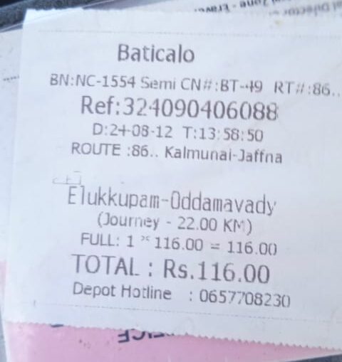 இன்றைய தினம் (12.08.2024) மட்டக்களப்பு எல்லைக் கிரமமப்புற பாடசாலையான ஜெயந்தியாய அஹமட் ஹிராஸ் வித்தியாலயத்திலிருந்து ஓட்டமாவடிக்கு வருவதற்காக மேற்படி இலக்கமுடைய பஸ் வண்டியில் பயணித்த சமயம் இடைநடுவே என்னுடைய பிரயாணப்பை பேரூந்திலிருந்து தவறி விழுந்து விட்டது.