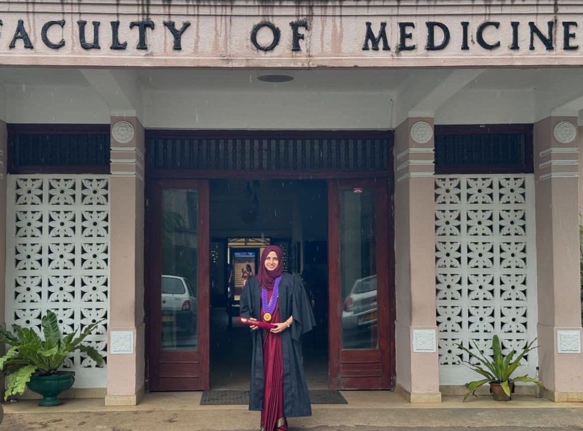 பல்கலைக்கழக வைத்தியபீட இறுதிப் பரீட்சையில் திறமைச் சித்தியடைந்த இவர் தேசிய வைத்தியமனை சேவைக்கு தெரிவாகி கொழும்பு டீ. சொயிசா மகளிர் வைத்தியசாலையில் கடமையாற்றுகிறார்.சமூகத்துக்கு சிறந்த சேவையாற்ற வேண்டும் என்ற தனது உயர்ந்த நீக்கத்தை அடைவதற்காக விடாமுயற்சியுடன் கல்வி ஞானத்தைப் பெற்று தனது இலக்கையடைந்த இவர் வைத்திய துறையில் மேலும் உயர்வுகளைப்பெற பெற்றோர், ஆசிரியர்கள் மற்றும் சமூக ஆர்வலர்கள் வாழ்த்தியுள்ளனர்.