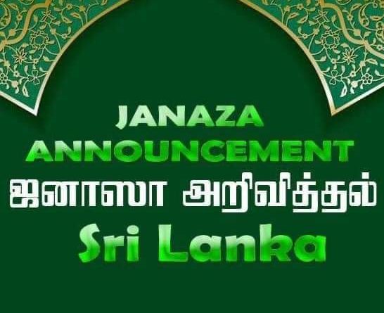ஜனாஸா நல்லடக்கம் இன்ஷா அல்லாஹ் இன்று லுகர் தொழுகையுடன் மாவனல்லை ஹிங்குலோயா மஸ்ஜிதுல் ஹுதா ஜும்மா பள்ளிவாசல் மையவாடியில் நல்லடக்கம் செய்யப்படும்.