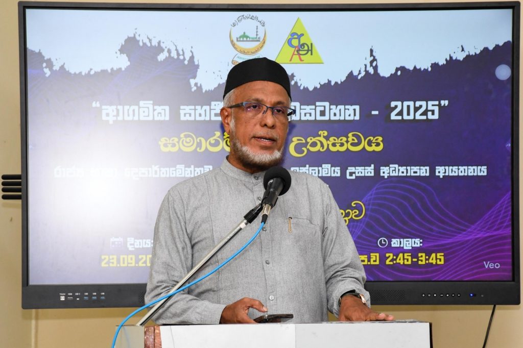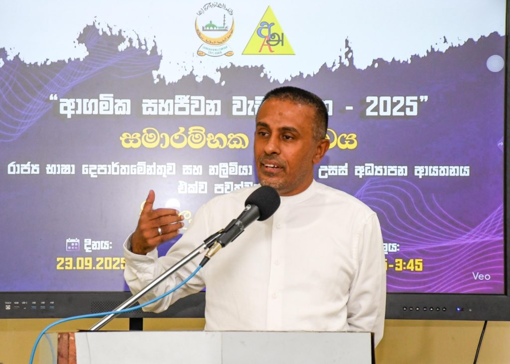 பேருவளை ஜாமிஆ நளீமிய்யா இஸ்லாமிய கற்கைகள் பீட மாணவர்களுக்கு சிங்கள மொழியில் பயிற்சி வழங்கும் நோக்கோடு ஆரம்பிக்கப்பட்டுள் சிங்கள மொழிப் பயிற்சித் திட்டத்தின் தொடக்க விழா (2025/09/23) பேருவளை ஜாமிஆ நளீமியா இஸ்லாமிய கலாபீடத்தில் தேசிய ஒருங்கிணைப்பு பிரதி அமைச்சர் முனீர் முளப்பர் தலைமையில் நடைபெற்றது.