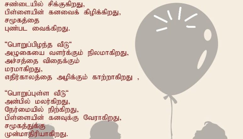 அந்தப் பொறுப்பு தொடங்குவது வீட்டிலிருந்தே…” அதையொட்டி இக்கவிதை வருகிறது