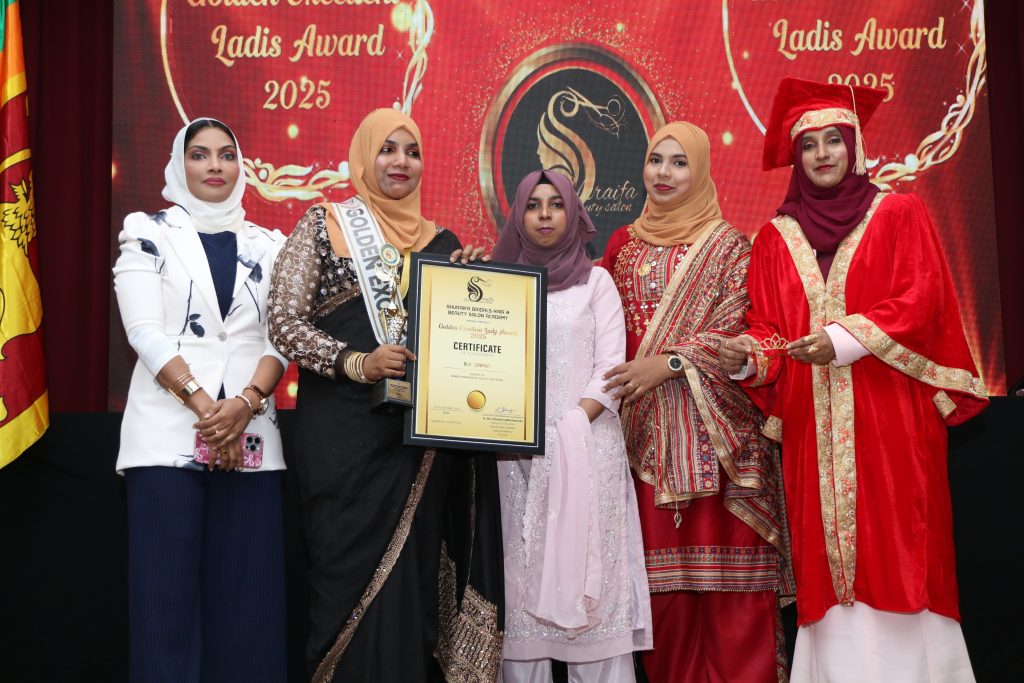 SHURAIFA BRIDAL HAIR & BEAUTY SALON ACADEMY ஏற்பாட்டில் கொழும்பு மியூசியம் கேட்போர்கூட அரங்கில் GOLDEN EXCELLENT LADIES AWARD CEREMONY 2025, நிறுவனத்தின் இயக்குனர் சுறைபா ரஹ்மான் தலைமையில் நடைபெற்றது.