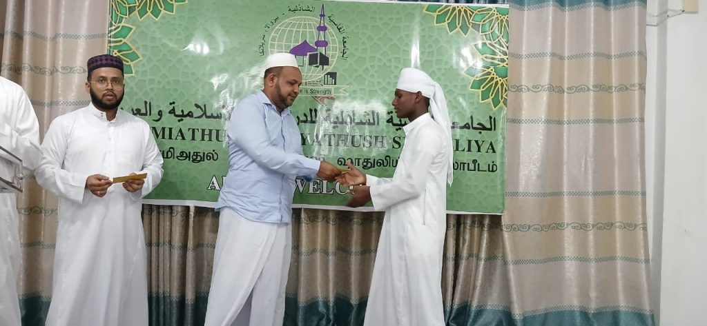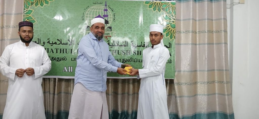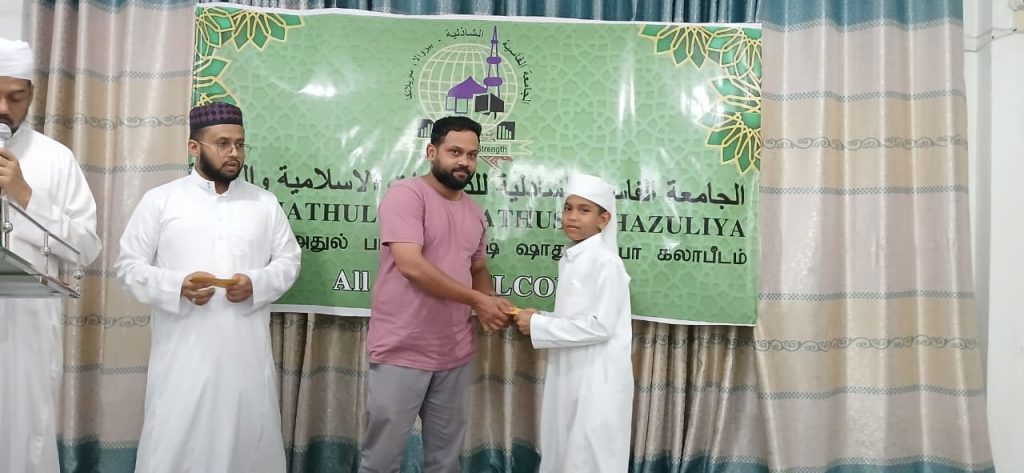 இதில் மாணவர்கள் ஆங்கிலம், தமிழ், அறபு மொழிகளில் உரையாற்றி திறமைகளை வெளிப்படுத்தியதோடு கிராத், இனிய கஸீதாக்களும் அரங்கேற்றப்பட்டு மாணவர்களுக்கு பெறுமதியான பரிசில்களும் வழங்கப்பட்டன.