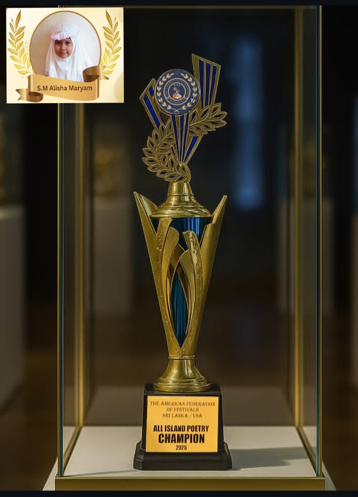 The American Federation of festivals – Srilanka வினால் ஏற்பாடு செய்யப்பட்டு இடம்பெற்ற 5 வயதிற்குற்பட்டவர்களுக்கான ஆங்கில கவிதைப் போட்டியில் தேசிய மட்டத்தில் முதலிடம் பிடித்து சம்பியன் பட்டத்தை வென்றார் கல்பிட்டியைச் சேர்ந்த சப்னி மொஹம்மட் அலீஸா மர்யம்.