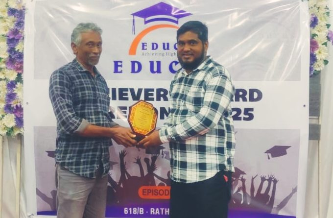 புத்தளம் பிரதேச செயலகத்திற்கு உட்பட்ட 618 பி ரத்மல்யாய கிராம சேவகர் பிரிவில் உள்ள சாதனையாளர்கள், சமூக சேவையாளர்களை பாராட்டி கௌரவிக்கும் நிகழ்வொன்று ஞாயிற்றுக்கிழமை (19) ரத்மல்யாய அஸ்னா வரவேற்பு மண்டபத்தில் இடம்பெற்றபோதே இவர் கௌரவிக்கப்பட்டுள்ளார்.