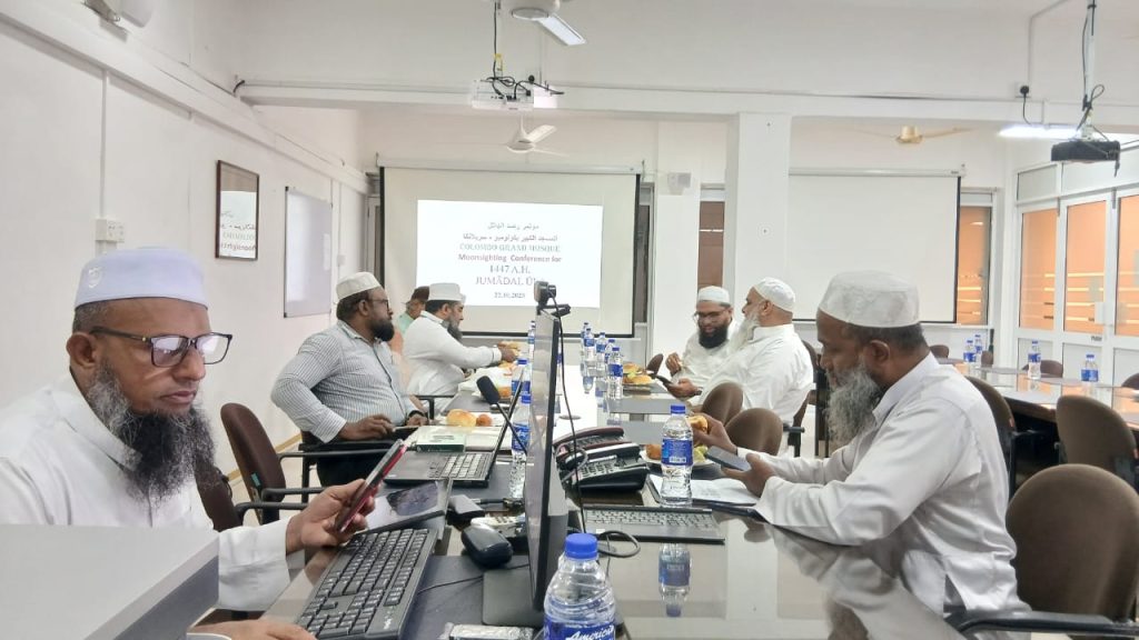 ஹிஜ்ரி 1447 ஜூமாதுல் ஊலா மாதத்திற்கான தலைப்பிறை பார்க்கும் மாநாடு நேற்று ஒக்டோபர் மாதம் 22 ஆம் திகதி மாலை மஃரிப் தொழுகைக்கு பிறகு கொழும்பு பெரிய பள்ளிவாசலில் பிறைக் குழு தலைவர் மெளலவி எம்.பி.எம். ஹிஷாம் அல் பத்தாஹி தலைமையில் இடம்பெற்ற இடம்பெற்றது.