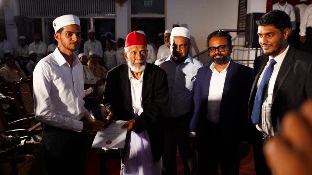 கலீபதுஷ் ஷாதுலி அஷ் ஷெய்க் இஹ்ஸானுத்தீன் அபுல் ஹஸன் (நளீமி) ஹழரா ஜமஅத் ஸ்தாபர் உறுப்பினர் அல் ஹாஜ் பர்ஸான் முர்ஸி ஆகியோர் பொன்னாடை போர்த்தி கௌரவிக்கப்பட்டனர்.