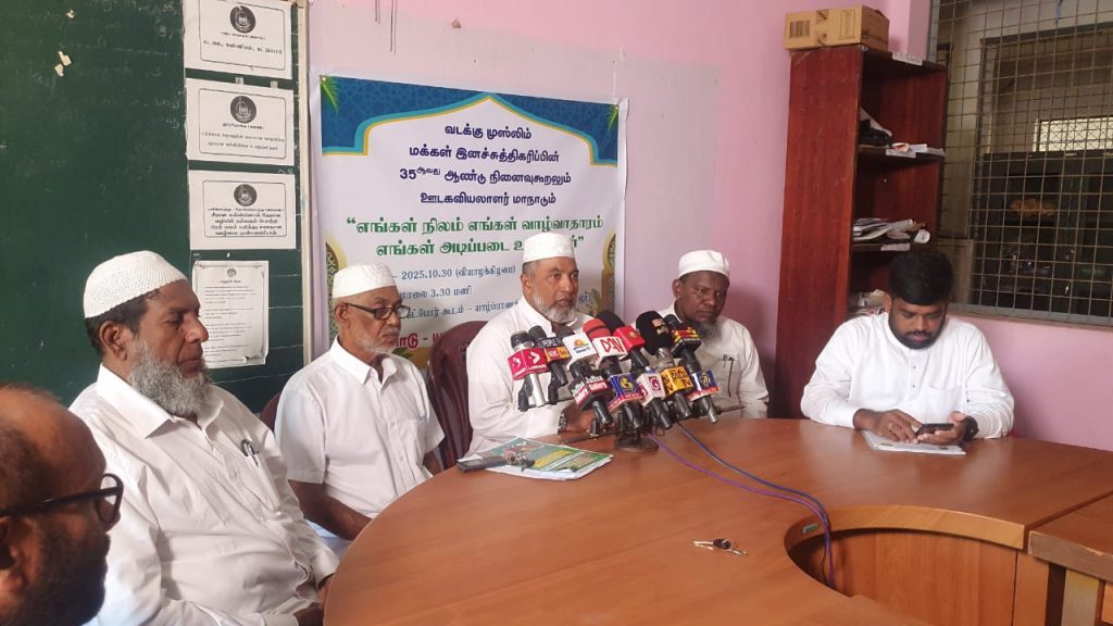1990 களில் தமிழீழ விடுதலைப் புலிகளினால் முன்னெடுக்கப்பட்ட வடக்கு முஸ்லிம் மக்கள் மீதான பலவந்த இனச்சுத்திகரிப்பின் 35ஆவது வருட நினைவுகூறலும் ஊடகவியலாளர் மாநாடும் யாழ்ப்பாணம் முஸ்லிம் சமூகத்தின் ஏற்பாட்டில் “எங்கள் நிலம், எங்கள் வாழ்வாதாரம் – எங்கள் அடிப்படை உரிமைகள்” எனும் தொனிப்பொருளில் நேற்று 2025.10.30 ஆம் திகதி யாழ்ப்பாணம் ஒஸ்மானியாக் கல்லூரி கேட்போர் கூடத்தில் இடம்பெற்றது.