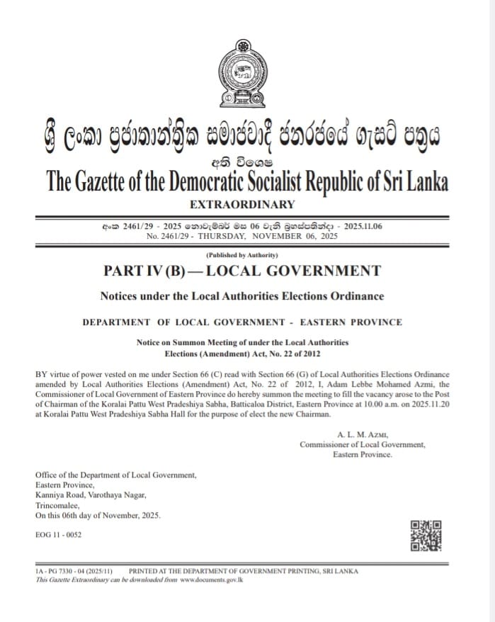 கோறளைப்பற்று மேற்கு ஓட்டமாவடி பிரதேச சபையின் புதிய தவிசாளர் தெரிவு இம்மாதம் 20 ஆம் திகதி இடம்பெறவுள்ளது.