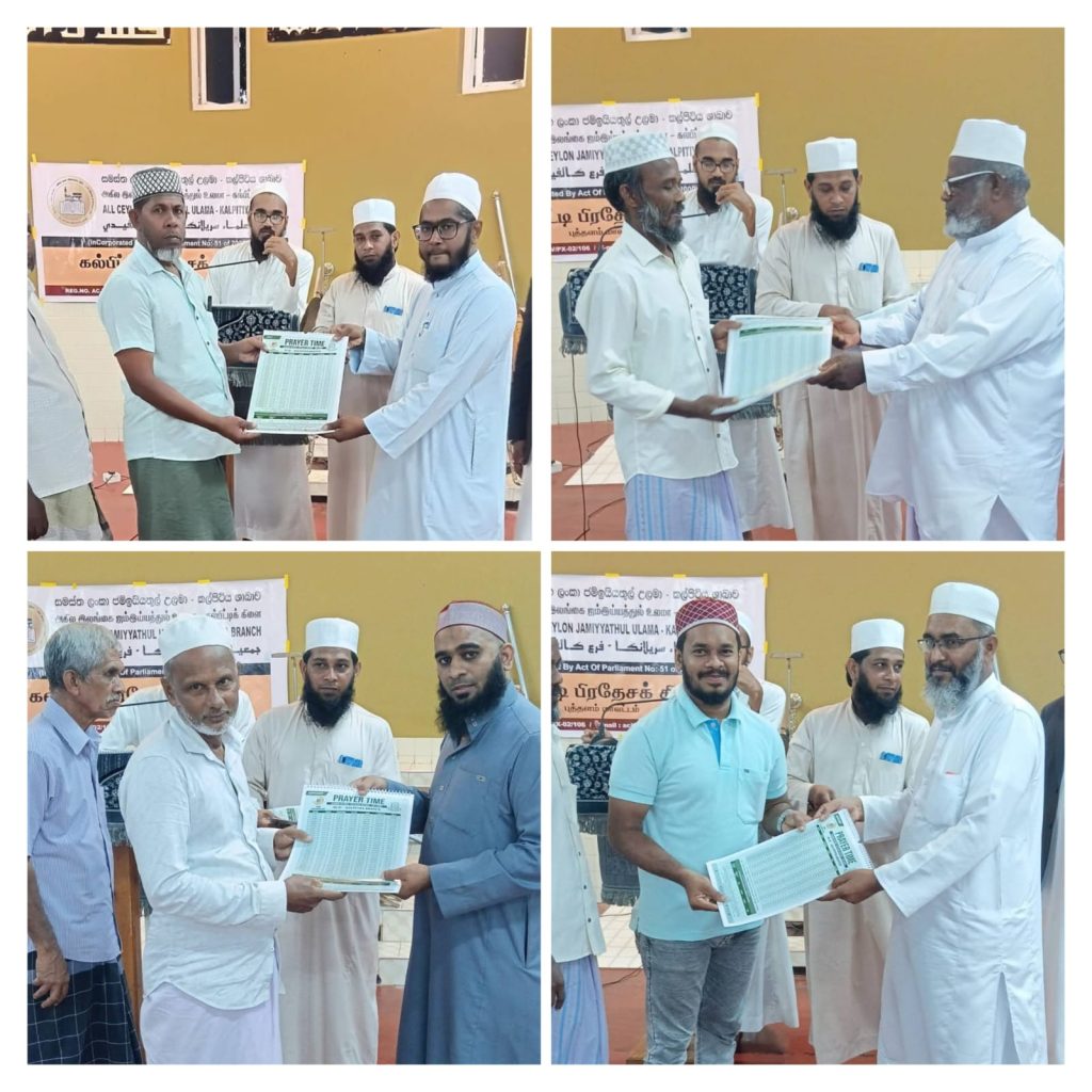 கற்பிட்டி பிராந்திய பள்ளிவாசல்களுக்கான புதிய தொழுகை நேர அட்டவணை விநியோகம்