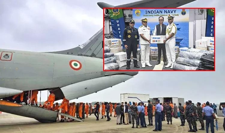 புயல் பாதிப்பு செய்தியை தொடர்ந்து, இந்திய கடற்படையின் 2 கப்பல்களில் 9.5 டன்கள் நிவாரண பொருட்கள் உடனடியாக கொண்டு சேர்க்கப்பட்டன. இதுதவிர, இந்திய விமான படையின் 3 விமானங்கள் 31.5 டன்கள் அளவிலான நிவாரண பொருட்களையும், இதன்பின்னர் சுகன்யா கப்பலில் 12 டன்கள் நிவாரண பொருட்கள் என மொத்தம் 53 டன்கள் நிவாரண பொருட்கள் இலங்கையை சென்றடைந்துள்ளன.