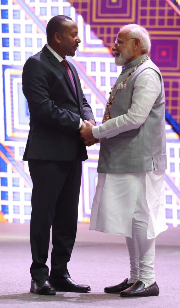 உலக தலைவர்களில் முதன்முறையாக இந்திய பிரதமர் நரேந்திர மோடிக்கு எத்தியோப்பியாவின் உயரிய விருது வழங்கி கவுரவித்தது.