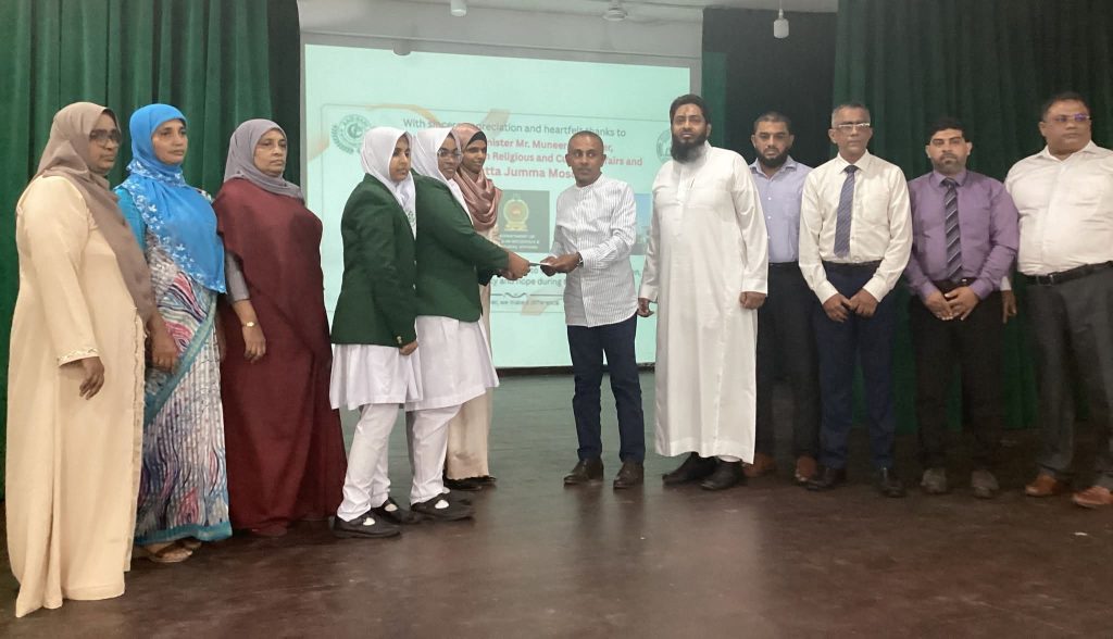 நேற்று 17.12.2025 புதன்கிழமை பௌத்தம் மற்றும் சமய விவகாரம் மற்றும் கலாசார பிரதியமைச்சர் அஷ்ஷேக் முனீர் மௌலபர், வெள்ளவத்தை ஜும்ஆப் பள்ளிவாசல்கள் பரிபாலன சபையின் அனுசரனையில் தெமட்ட கொடை கைரியா மகளிர் பாடசாலையில் கல்வி கற்கும் வெள்ளத்தினால் பாதிக்கப்பட்ட தனது உடைமைகளை இழந்த 750 மாணவிகளுகளுக்கு காலணிகளை பெற்றுக் கொள்வதற்காக 1.5 மில்லியன் ரூபாவுக்கு காசோலை கல்லுாாி அதிபரிடம் கையளிக்கும் நிகழ்வு கல்லூரியின் சம் சம் ஹாஜியார் மண்டபத்தில் நடைபெற்றது.
