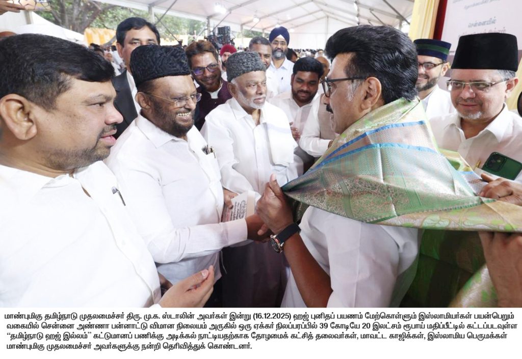 இஸ்லாமிய சமுதாய மக்கள் ஹஜ் பயணம் மேற்கொள்வதை அவர்களின் வாழ்நாள் கடமைகளில் முக்கியமானதாகக் கருதுகிறார்கள். தமிழ்நாட்டின் பல்வேறு பகுதிகளில் இருந்தும் ஹஜ் பயணம் மேற்கொள்ள ஆண்டுதோறும் சென்னை வரும் இஸ்லாமியர்கள் பயணம் புறப்படுவதற்கு ஒரு நாள் முன்னதாகச் சென்னை வந்து தங்கி சென்னை விமான நிலையம் வழியாக ஹஜ் பயணம் செல்வதற்கு வசதியாக விமான நிலையத்திற்கு அருகில் தமிழ்நாடு ஹஜ் இல்லம் கட்டப்படும் என 2.3.2025 அன்று அறிவித்திருந்தார்கள்.