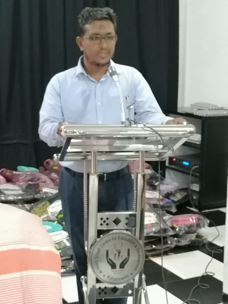 அல் இமாம் ஷாபிஈ நிலையத்தின் பணிப்பாளர் சபைத் தலைவரும் பஹன மீடியா நிறுவனத்தின் முகாமைத்துவப் பணிப்பாளருமான அஷ்ஷெய்க் எம்.எஸ்.அப்துல் முஜீப் கபூரி தலைமையில் நடைபெற்ற இந்நிகழ்வில் விசேட பேச்சாளராக கலந்துகொண்டு கருத்துத் தெரிவிக்கையிலேயே அவர் இதனைக் குறிப்பிட்டார். அவர் மேலும் கூறியதாவது,