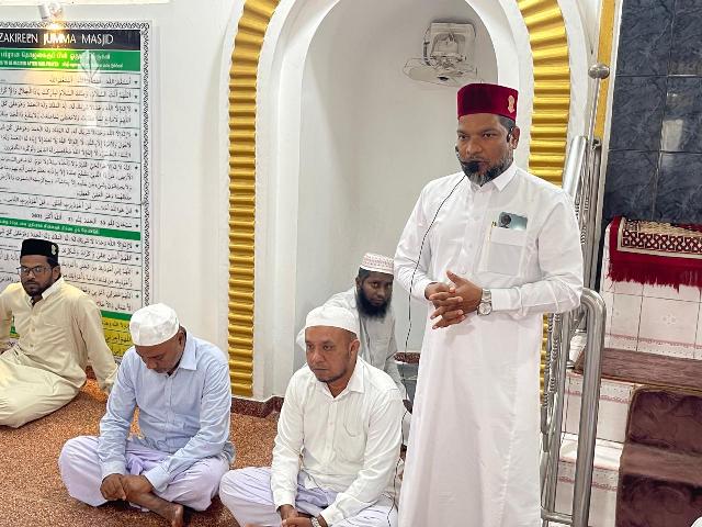 பேச்சாளராக கலந்துகொண்டு பள்ளிவாசல் அமை ப்பதனால் கிடைக்கும் நன்மைகள் பற்றி எடுத்துக் கூறினார். அட்டிக்கல் நட்டிய பின்னர் துஆப் பிரார்த்தனையை கலீபத்துஷ் ஷாதுலி அல்ஹாஜ் ஸைனுல் ஆப்தீன் (பஹ்ஜி) நடாத்தி வைத்தார்.