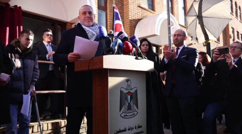 பலஸ்தீனத்திற்கான அதிகாரபூர்வ தூதரகம் லண்டனில் சமீபத்தில் திறக்கப்பட்டுள்ளது. இது, கடந்த செப்டம்பர் மாதம் பிரித்தானியா பலஸ்தீனத்தை தனி நாடாக அதிகாரபூர்வமாக அங்கீகரித்த நகர்வின் அடுத்த முக்கிய கட்டமாகும்.