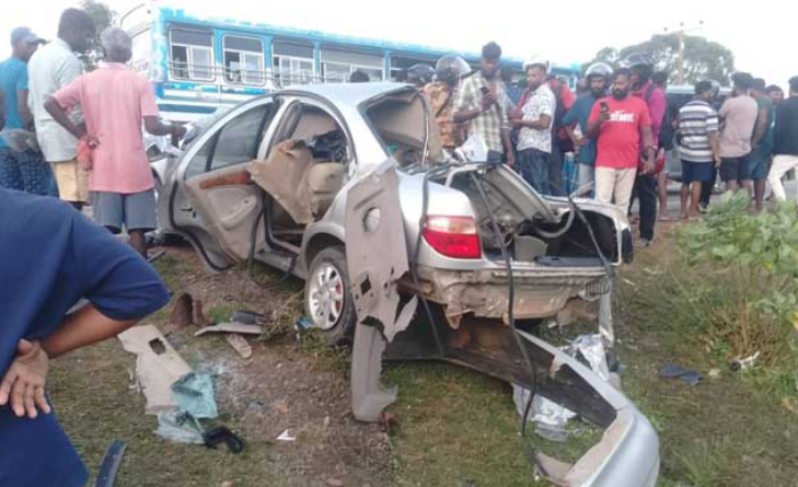 கிளிநொச்சி – முரசுமோட்டை பகுதியில் பேருந்துடன் கார் ஒன்று நேருக்கு நேர் மோதி விபத்துக்குள்ளானதில், காரில் பயணித்த நால்வர் உயிரிழந்துள்ளனர்.