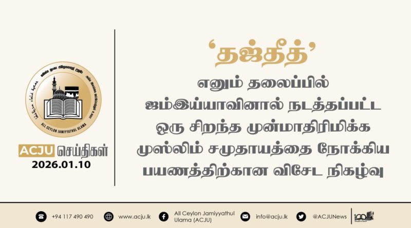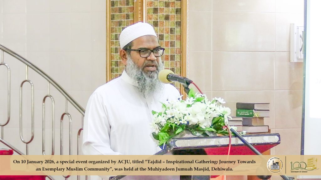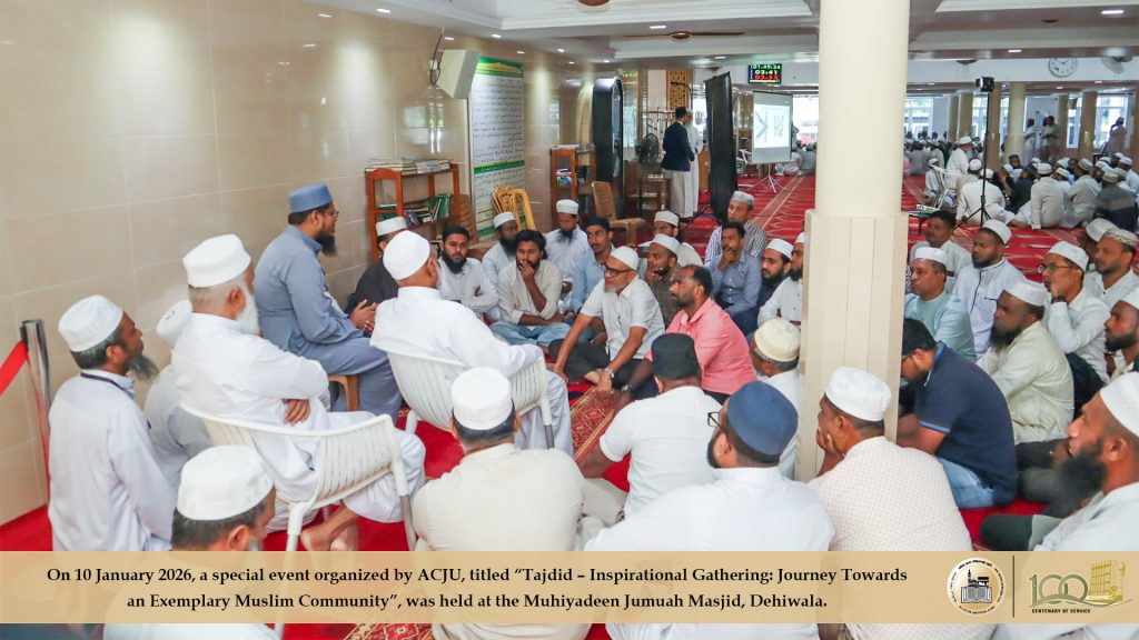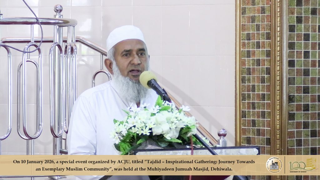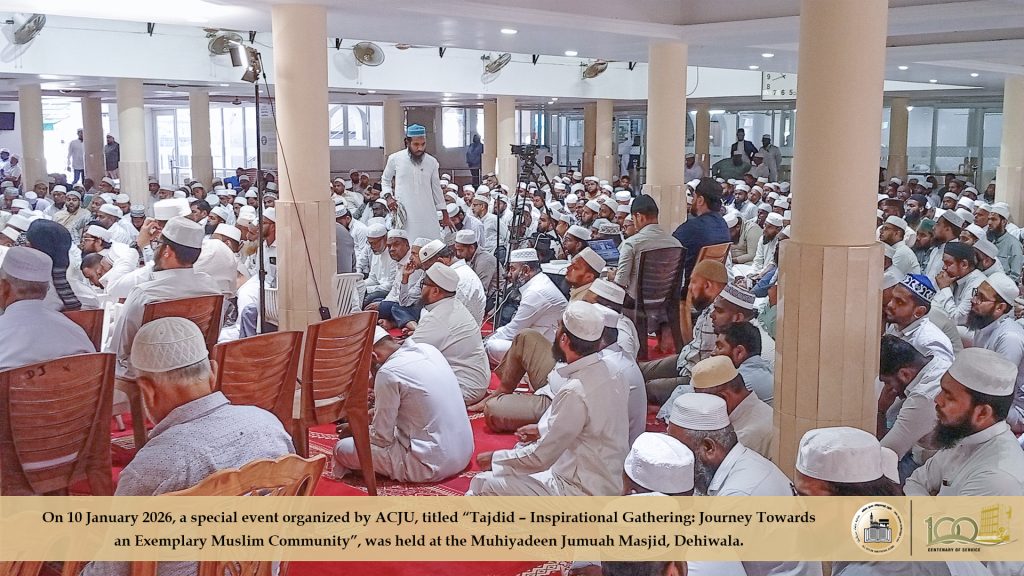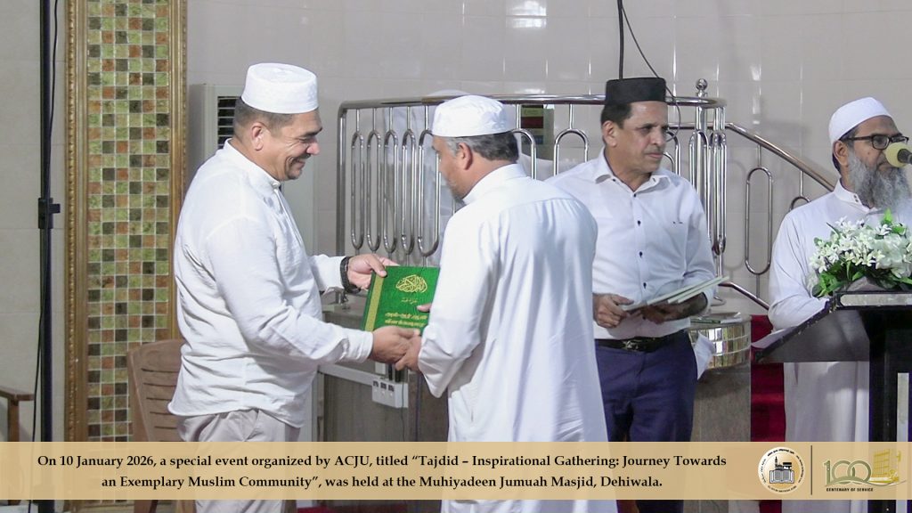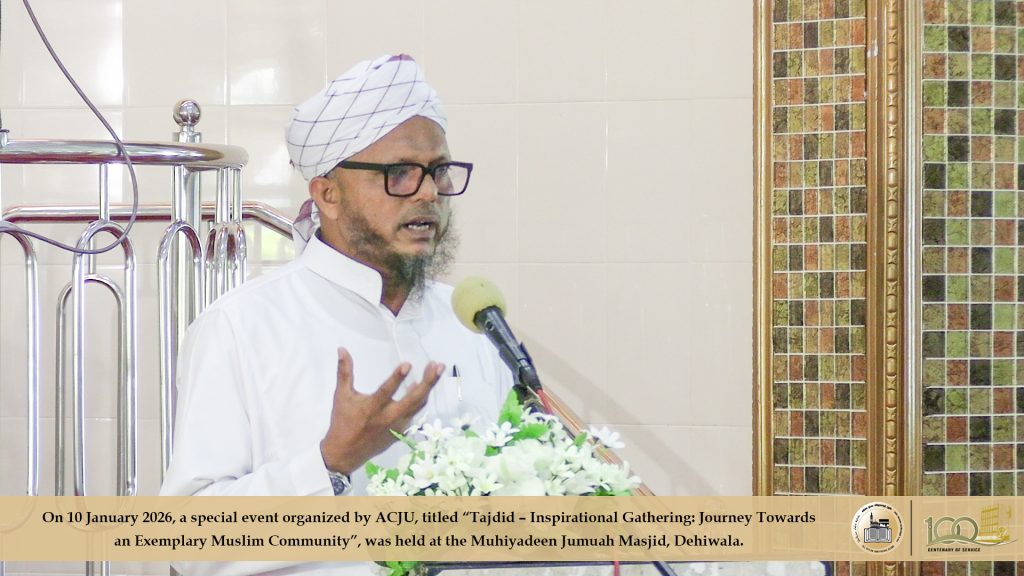 2026 ஜனவரி 10ஆம் திகதி, அகில இலங்கை ஜம்இய்யத்துல் உலமாவின் ஏற்பாட்டில் ‘தஜ்தீத்’ எனும் தலைப்பில்’ ஒரு சிறந்த முன்மாதிரி முஸ்லிம் சமுதாயத்தை நோக்கிய புதிய பயணம்’ எனும் கருப்பொருளிலான விசேட நிகழ்வொன்று தலைவர் முஃப்தி எம்.ஐ.எம். ரிஸ்வி அவர்களது தலைமையில் தெஹிவளை முஹியத்தீன் ஜுமுஆ பள்ளிவாயலில் இடம்பெற்றது.