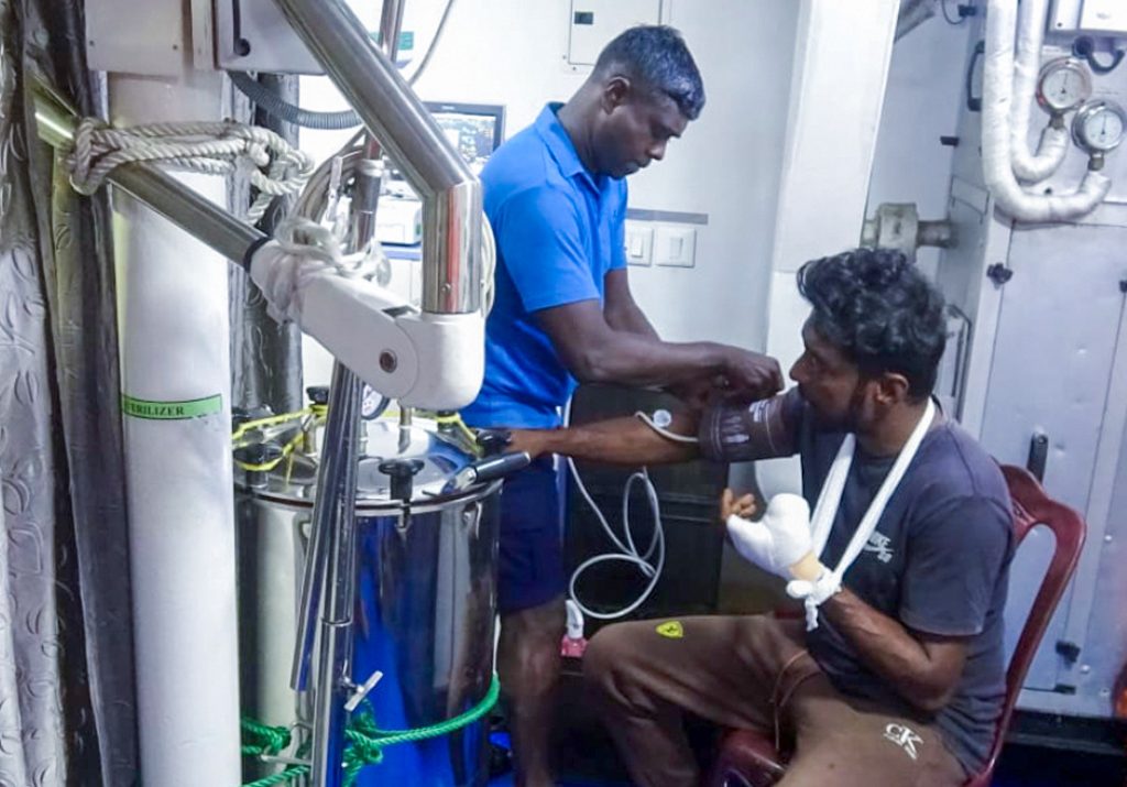 2025 டிசம்பர் 23 ஆம் திகதி பேருவளை மீன்பிடித் துறைமுகத்தைச் சேர்ந்த ஆறு (06) மீனவர்களை ஏற்றிச் சென்ற பல நாள் மீன்பிடிக் கப்பலான ‘மானெல் சோஹோயுரோ’ (IMUL-A-0632 KLT) இலங்கைக்கு தெற்கே நூற்று முப்பத்து நான்கு (134) கடல் மைல் தொலைவில் ஆழ்கடலில் மீன்பிடி நடவடிக்கைகளில் ஈடுபட்டிருந்தது. ஒரு விபத்து காரணமாக, கப்பலில் இருந்த மீனவர்களில் ஒருவரின் இரண்டு விரல்கள் துண்டிக்கப்பட்டு, அவர் ஆபத்தான நிலையில் உள்ளார். மீன்வள மற்றும் நீர்வளத் துறையால் கொழும்பு கடற்படை தளத்தில் உள்ள கடல்சார் தேடல் மற்றும் மீட்பு ஒருங்கிணைப்பு மையத்திடம் மீனவரை சிகிச்சைக்காக கரைக்கு கொண்டு வருவதற்கு உதவி வழங்குமாறு விடுக்கப்பட்ட கோரிக்கைக்கு கடற்படை உடனடியாக பதிலளித்தது. கடற்படை நோயாளிக்கு தேவையான மருத்துவ ஆலோசனைகளை (Tele Therapy) தொலைபேசி மூலம் வழங்கியதுடன், நோயாளியை அருகிலுள்ள மீன்பிடி துறைமுகத்திற்கு அழைத்து வருமாறு அவருக்குத் தெரிவித்ததுடன், நோயாளியை விரைவாக கரைக்கு கொண்டு வருவதற்காக, தெற்கு கடலில் கண்காணிப்பு நடவடிக்கைகளை மேற்கொண்டு வந்த இலங்கை கடற்படை கப்பல் சிந்துரலா, அந்த கடல் பகுதிக்கு அனுப்பப்பட்டது.