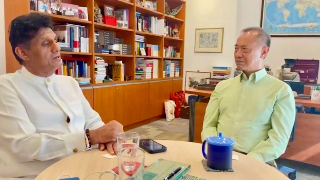 ஆளுகை, பொருளாதார மாற்றம் மற்றும் பொதுக் கொள்கை மறுசீரமைப்பு குறித்து விரிவான கலந்துரையாடல்களை முன்னெடுப்பதை நோக்கமாகக் கொண்டு, சிங்கப்பூருக்கு ஆய்வுச் சுற்றுப்பயணத்தை மேற்கொண்டுள்ள எதிர்க்கட்சித் தலைவர் சஜித் பிரேமதாச இன்று சிங்கப்பூரின் முன்னாள் வெளியுறவு அமைச்சர் ஜார்ஜ் இயோ-யோங்-பூனைச் (George Yeo Yong-Boon) சந்தித்தார்.