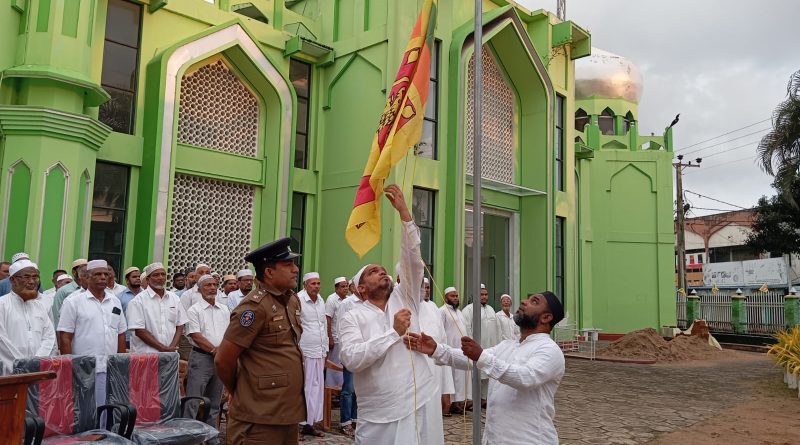 சாய்ந்தமருது – மாளிகைக்காடு ஜும்ஆப் பெரிய பள்ளிவாசலின் நம்பிக்கையாளர் சபை உறுப்பினர்கள், உலமாக்கள், வர்த்தக சங்க உறுப்பினர்கள், சாய்ந்தமருது – மாளிகைக்காடு ஜம்இய்யத்துல் உலமா, ஜமாஅத்தினர்கள் மற்றும் பொதுமக்கள் புடைசூழ சாய்ந்தமருது – மாளிகைக்காடு ஜும்ஆப் பெரிய பள்ளிவாசலின் தலைவர் அல்ஹாஜ் எம்.எஸ்.எம். முபாரக் அவர்களினால் தேசிய கொடி ஏற்றப்பட்டது.