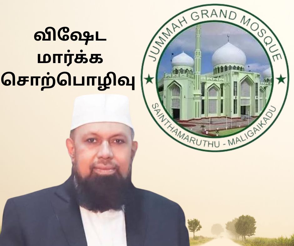 எனவே, அனைத்து பொதுமக்களும் உரிய நேரத்திற்கு முன்னர் வருகை தந்து மார்க்க சொற்பொழிவை கேட்டு பயன் பெறுமாறு சாய்ந்தமருது – மாளிகைக்காடு ஜும்ஆப் பெரிய பள்ளிவாசல் நம்பிக்கையாளர் சபை உறுப்பினர்கள் கேட்டுக் கொள்கின்றனர்.