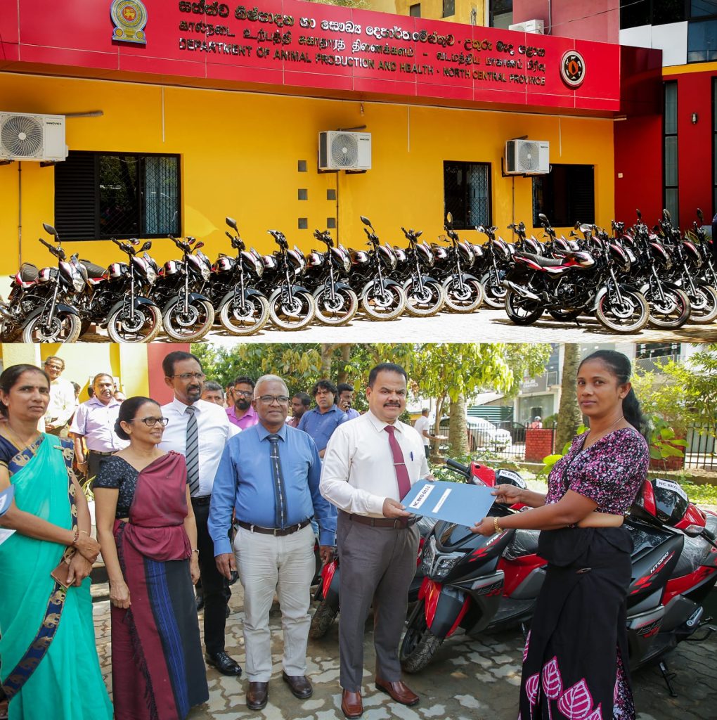 வடமத்திய மாகாண கால்நடை உற்பத்தி மற்றும் சுகாதாரத் திணைக்களத்தின் 40 விலங்கு மேம்பாட்டு ஆலோசகர்களுக்கு மோட்டார் சைக்கிள்கள் வழங்கும் நிகழ்வு மாகாண ஆளுநர் வசந்த ஜினதாச தலைமையில் விலங்கு உற்பத்தி மற்றும் சுகாதார திணைக்கள வளாகத்தில் (24) நடைபெற்றது.