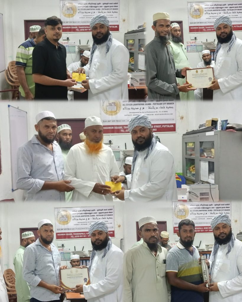 புத்தளத்தில் இடம்பெற்ற ஹிஸ்புல் குர்ஆன் மாணவர்களுக்கான பரிசளிப்பு நிகழ்வு